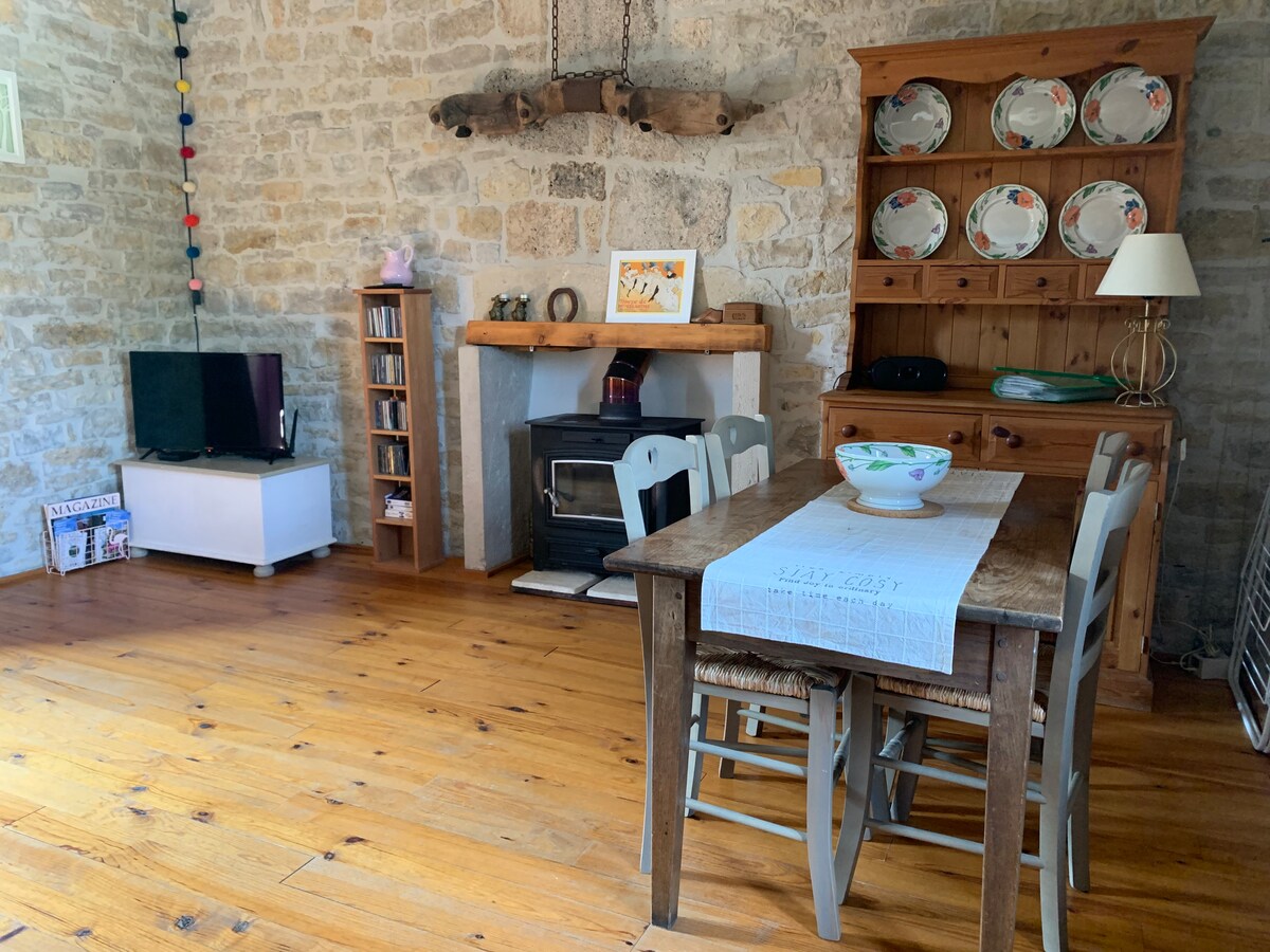 Junto a nuestra casa, pero totalmente independiente. El apartamento, con un toque vintage, como el de la abuela, es independiente de nuestro alojamiento,consta de un dormitorio grande,un baño,inodoro y cocina(fregadero,cafetera+senseo,pequeña nevera,microondas,placa de gas,lavadora). Está cerca del lago de la Roucarié con su playa. Mi alojamiento es perfecto para parejas con o sin hijos, personas que viajan solas. Le recibiremos simplemente como nos gusta ser recibidos: ¡con toda sencillez!