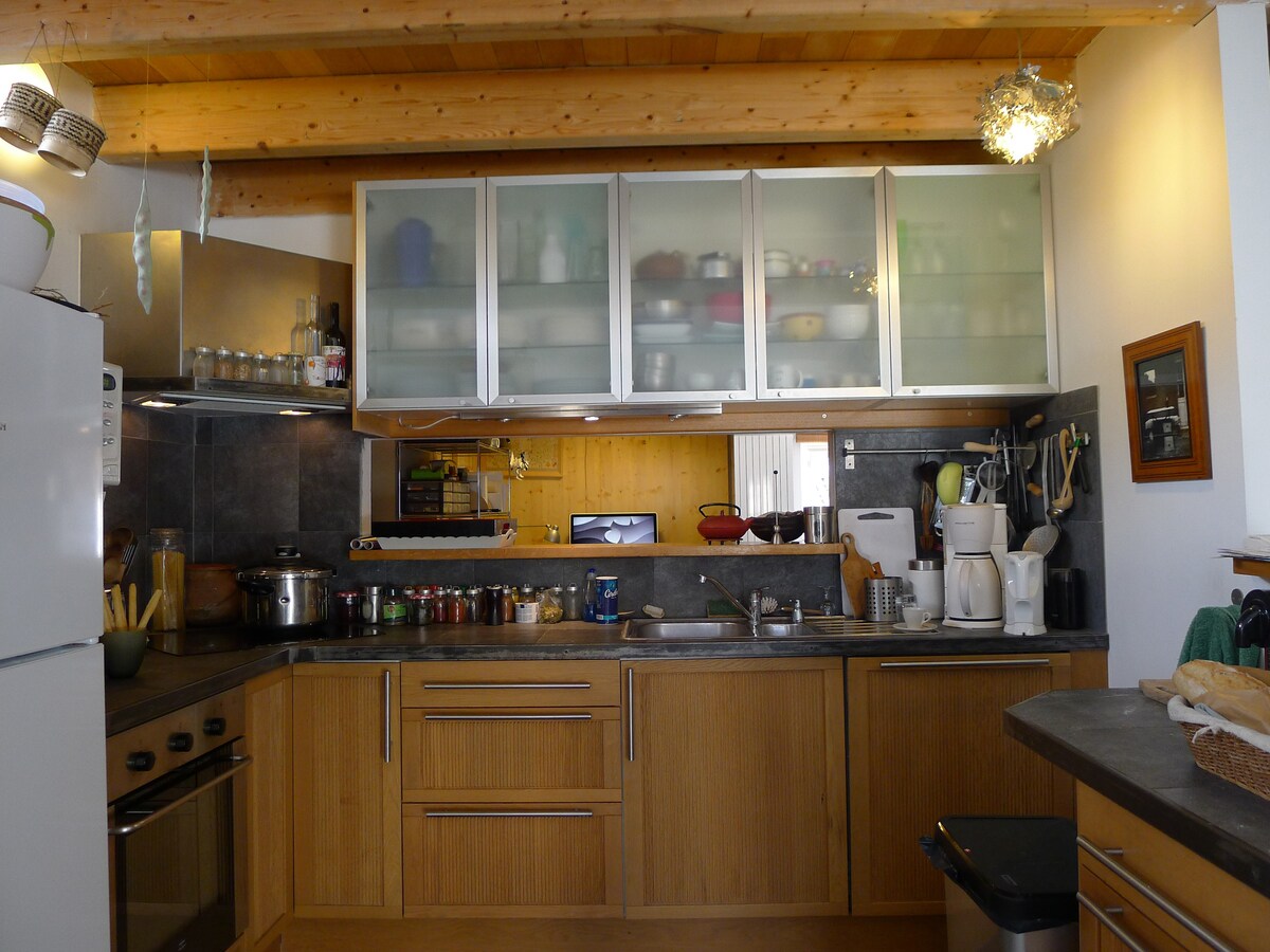 El loft de diseño independiente de 100 m² se abre a un gran espacio habitable que consta de una sala de estar, una cocina abierta y un baño en la planta baja y un altillo arriba. El salón cuenta con un gran sofá de cuero, un sillón y un televisor de pantalla plana. La cocina abierta está totalmente equipada con isla central. El baño cuenta con una ducha a ras de suelo, lavabo doble, lavadora e inodoro. Ambas habitaciones cuentan con una cama de 160 y un armario.