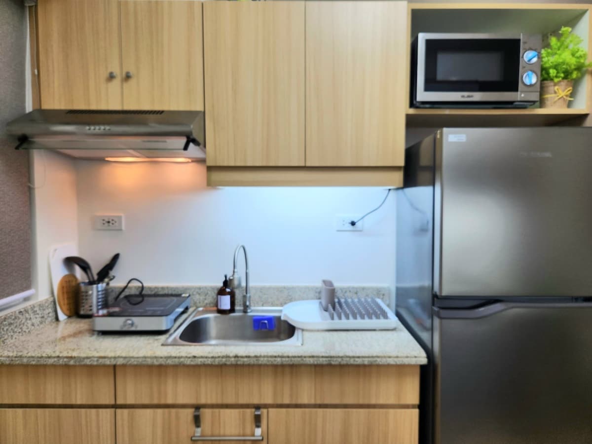 Escape to our charming team kahoy staycation unit, where comfort meets convenience. This delightful retreat features a well-appointed 2 bedroom with a fully functional kitchen, a bathroom with a soothing hot and cold shower, an air-conditioned room for a peaceful sleep, a 43" TV for entertainment, and a dedicated working table. Additionally, we offer PAY PARKING within the building, and our prime location puts you just a stone's throw away from Ayala Mall Cloverleaf.