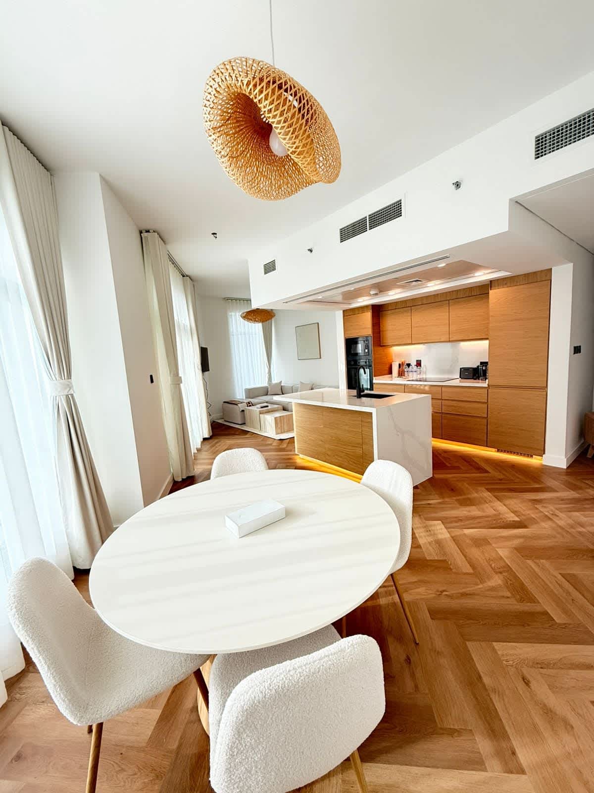 Nuestro departamento familiar de 1 dormitorio cuidadosamente diseñado se encuentra en el corazón de Palm Jumeirah de Dubái, justo enfrente del famoso centro comercial Nakheel. El apartamento tiene una cocina totalmente equipada y está situado dentro de un hotel de estilo de vida completo de 5 estrellas, el Andaz Dubai The Palm by Hyatt. El apartamento te ofrece acceso a una variedad de servicios, como acceso a la playa de la comunidad y a la piscina familiar con vistas al Burj Al Arab, varios restaurantes y áreas de relajación solo para adultos (Ora Spa).
