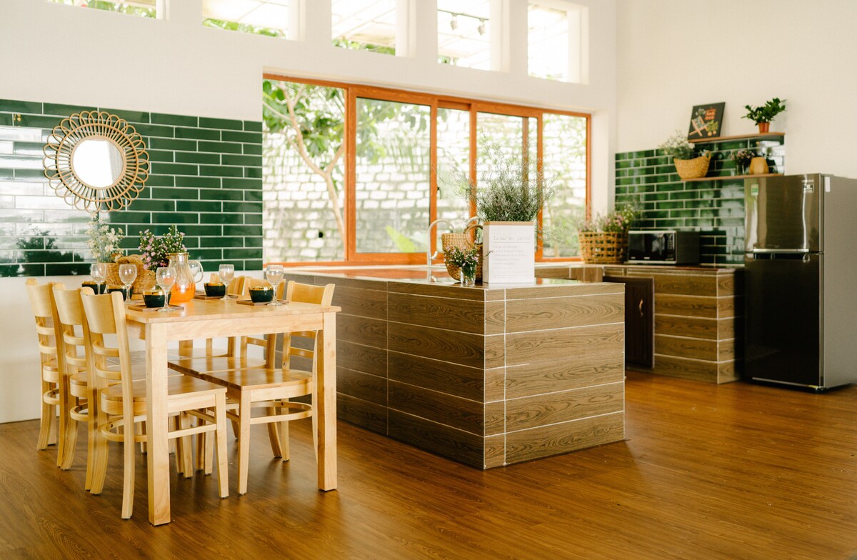 Donde tienes una experiencia de viaje “realmente relajada” en la ciudad costera de Vung Tau . Casa del árbol - Villa Livin 126 Villa con jardín de resort, espacio moderno y verde con árboles, gran piscina en el lugar. La piscina es segura para ambos niños pequeños, diseño de área de baño al aire libre. Amplio espacio de jardín, con mesas de comedor y sillas para barbacoa al aire libre. Disponemos de parrilla y otros servicios. Instalaciones de entretenimiento en la villa con mesa de billar, karaoke Diseño de la villa, solo planta baja, no arriba.