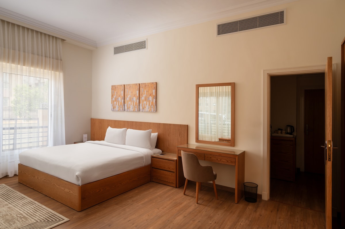 La habitación tiene un baño privado. El dormitorio es amplio, tiene aire acondicionado y 1 cómoda cama tamaño queen y armario. La sala de estar cuenta con TV de pantalla plana, WiFi gratuita, televisión por cable, minibar y hervidor de agua. El baño es limpio y moderno. La propiedad ofrece a los huéspedes sábanas limpias, toallas y almohadas extra.