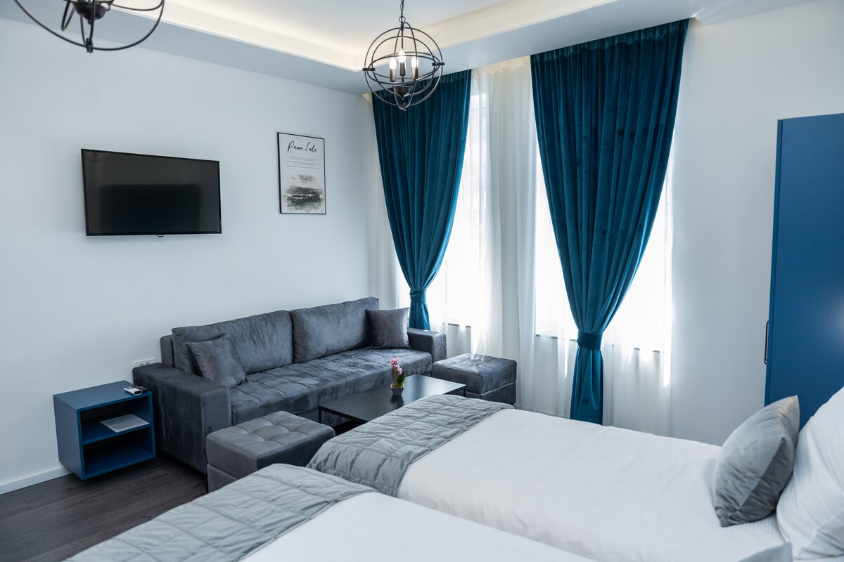 El apartamento Deluxe tiene una distribución bien diseñada de habitaciones que incluye un dormitorio espacioso y una agradable sala de estar. El dormitorio está elegantemente decorado y equipado con una cómoda cama, mientras que la sala de estar ofrece un espacio para relajarse y socializar. La cocina equipada del apartamento le permite preparar sus propias comidas. Tanto si quieres cocinar una cena completa como si solo quieres preparar una comida rápida, tienes a tu disposición todos los electrodomésticos y utensilios de cocina necesarios.