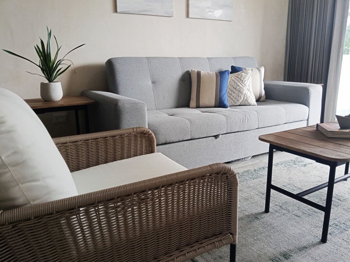 Un espacio para bajar el ritmo y disfrutar Bacalar desde la calma. El departamento se encuentra en un condominio moderno y tranquilo, a solo unas pasos de la laguna. El edificio y el departamento son relativamente nuevos, con buenos acabados, frescos y bien cuidados, pensados para estancias cómodas y sin complicaciones. Un lugar para descansar, leer, ver una película o simplemente compartir el tiempo en pareja, con privacidad, silencio y una atmósfera que invita a quedarse.