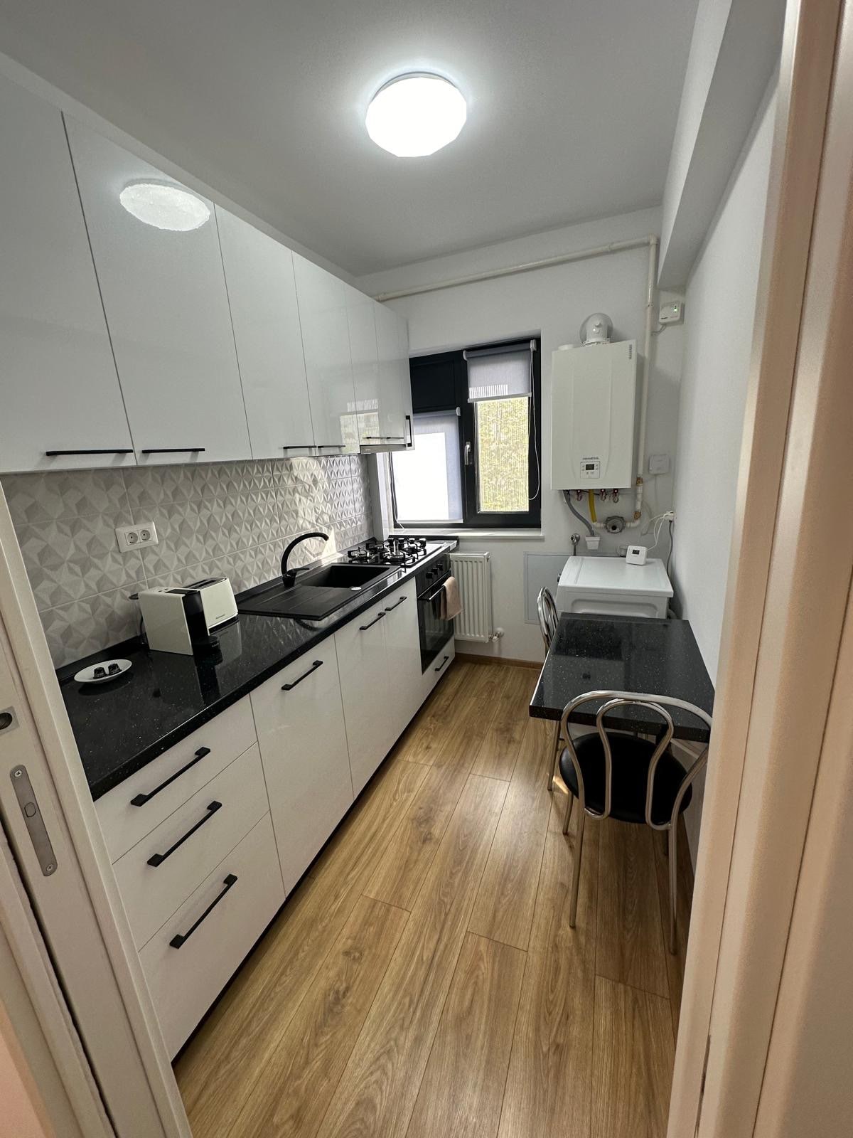 Este nuevo estudio, luminoso y elegante, se encuentra en una de las zonas más solicitadas de Bacău. Con este pequeño apartamento te ofrecemos una opción de alojamiento ideal. Cerca hay un centro comercial, un supermercado, restaurantes y cafeterías, y transporte público. El estudio tiene 2 habitaciones y es adecuado para un máximo de 3 personas. Está equipado con: wifi, aire acondicionado, cafetera (café de la casa), lavadora, cocina y baño bien equipados, registro de entrada automático. El aparcamiento está asegurado.