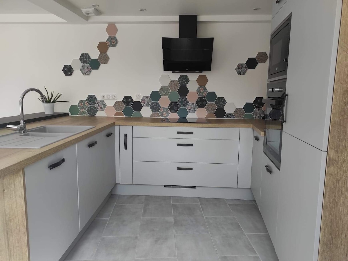 Le ofrecemos nuestra pequeña casa de huéspedes de 30 m2 en la parte inferior del jardín, con todas las comodidades: dormitorio con cama de 140, baño con ducha, cocina equipada, pequeña sala de estar con sofá cama. Ideal para 2-3 personas. ¡Atención! Estamos en modo Tiny House, el techo no es muy alto, ¡complicado para personas de más de 1,95 m! Tiene una hermosa terraza con barbacoa y Mollkye, sin vecinos. Pongo a su disposición té y café para su llegada, la cama estará hecha.