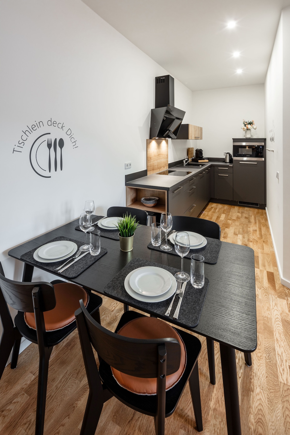 Esta suite «Zauberlehrling» es única e inigualable en Aue y los Montes Metálicos. Es probablemente uno de los apartamentos más exclusivos de la región. Con 50 metros cuadrados de espacio habitable, ofrece espacio para un máximo de 4 personas. La suite, a la que se puede llegar en ascensor, ofrece una zona de comedor/sala de estar, cocina de marca de lujo y dormitorio principal. El espacioso cuarto de ducha de bienestar cuenta con una gran ducha a ras de suelo. Todos los muebles son productos de marca de alta calidad.