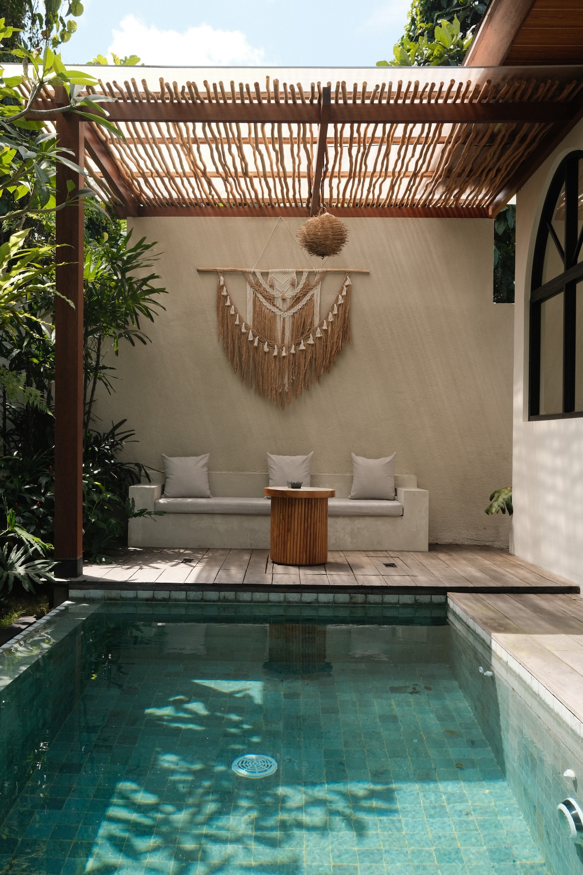 Enjoy your romantic private times in a luxurious complex, close to a fine selection of world-class cafes, restaurants and beach clubs. But perfectly hidden in a serene and quiet villa neighbourhood. This villa features an ensuite bathtub and offers a perfect dip-in pool. Enjoy your floating breakfast under the wood panels with sunlight gently pouring through. Chillax on the bean bag or sun loungers at your choice while soaking up the view of the garden.