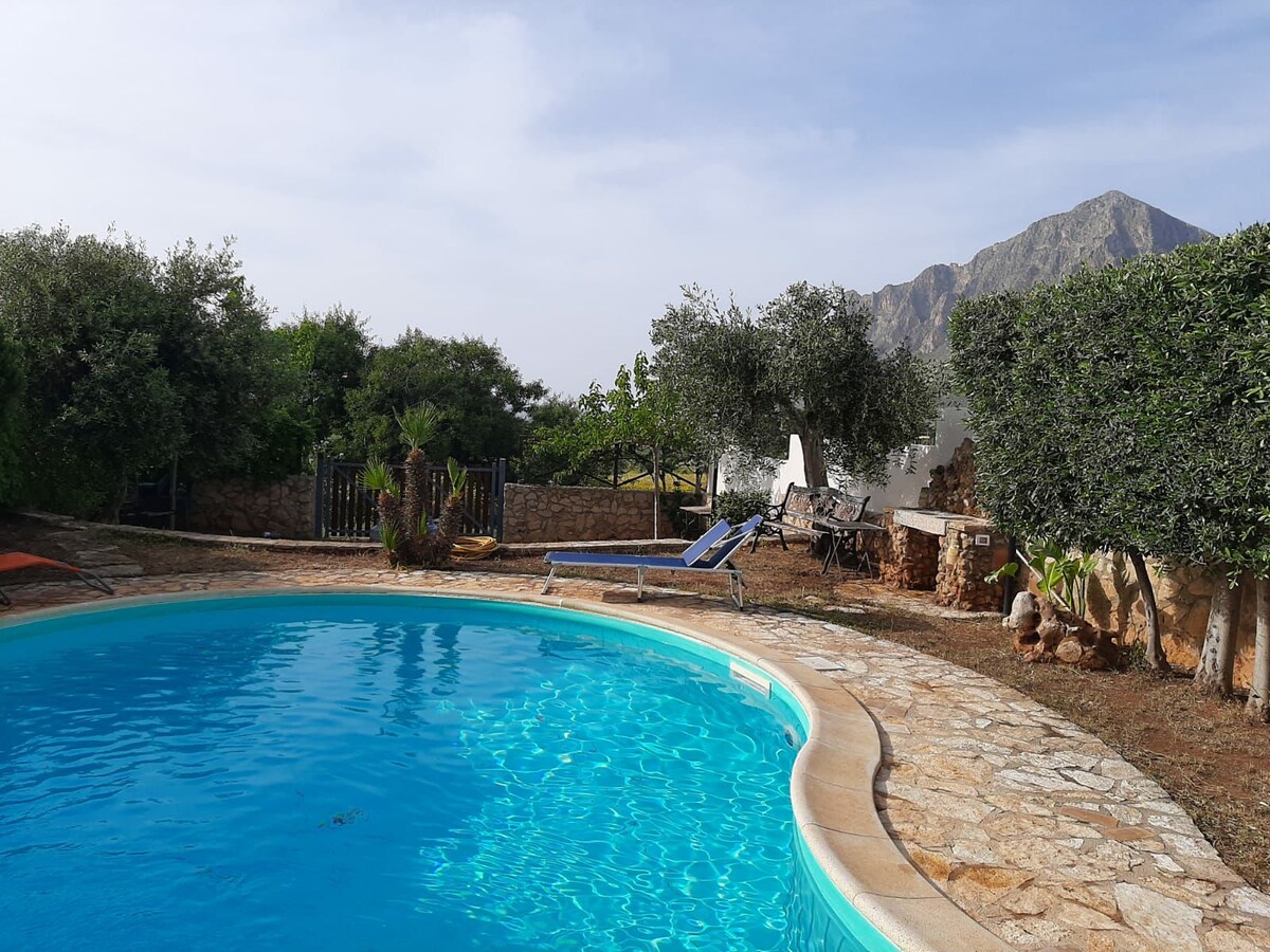 Soggiornerete al piano terra della mia villa a 3 minuti a piedi dal mare, composta da due appartamenti separati. *Non condividerete tutti gli spazi esterni con gli altri ospiti*. L'appartamento gode di un ampio spazio esterno con tavolo da pranzo, divanetti e sdraio, il parcheggio è privato. La villa si trova in una delle aree più suggestive di Scopello, a 200 metri dalla bellissima spiaggia di Cala Mazzo di Sciacca, ed è circondata da un ampio giardino alberato e una suggestiva vista mare