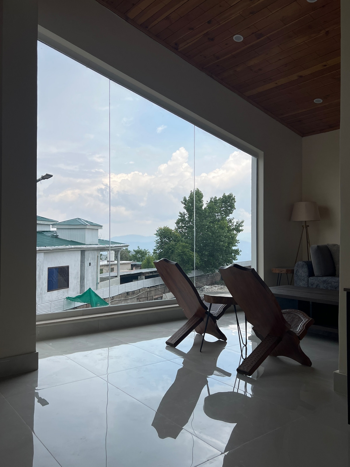 Un lujoso apartamento con servicios y vistas panorámicas de 180° a la montaña. Es un refugio tranquilo a 10-15 minutos en coche del concurrido bazar de Nathiagali cuando te diriges hacia el campamento de la fuerza aérea de Kalabagh y tomas el camino forestal a través de las afueras del bosque. El apartamento cuenta con un salón de entretenimiento privado adicional con cine en casa, billar, tenis de mesa y un simulador de carreras. Siéntete como en casa con el personal, que consiste en un ama de llaves y un cocinero. Calefacción, agua caliente, wifi de alta velocidad y energía solar de reserva.
