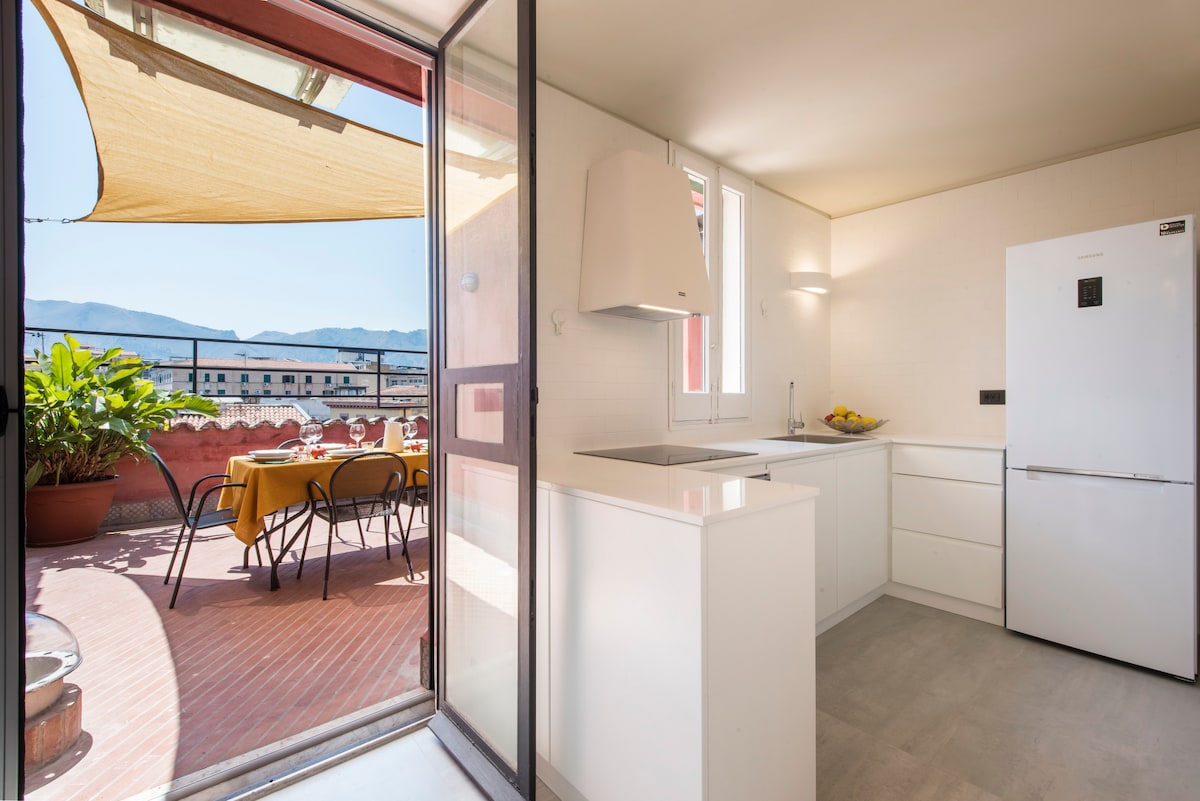 🌅 Vista única en Palermo • Terraza privada • Centro histórico • Arquitectura de calidad • Design 🌟 PortaFelice es un ático amplio y luminoso situado dentro del Palazzo Amoroso, un raro ejemplo de Arquitectura Racionalista Italiana con vistas a una de las plazas más emblemáticas del centro histórico. El apartamento ofrece una espectacular vista al mar y una gran terraza privada. 📌 Estimados huéspedes, antes de reservar, les pedimos leer las reglas de la casa y las secciones siguientes.