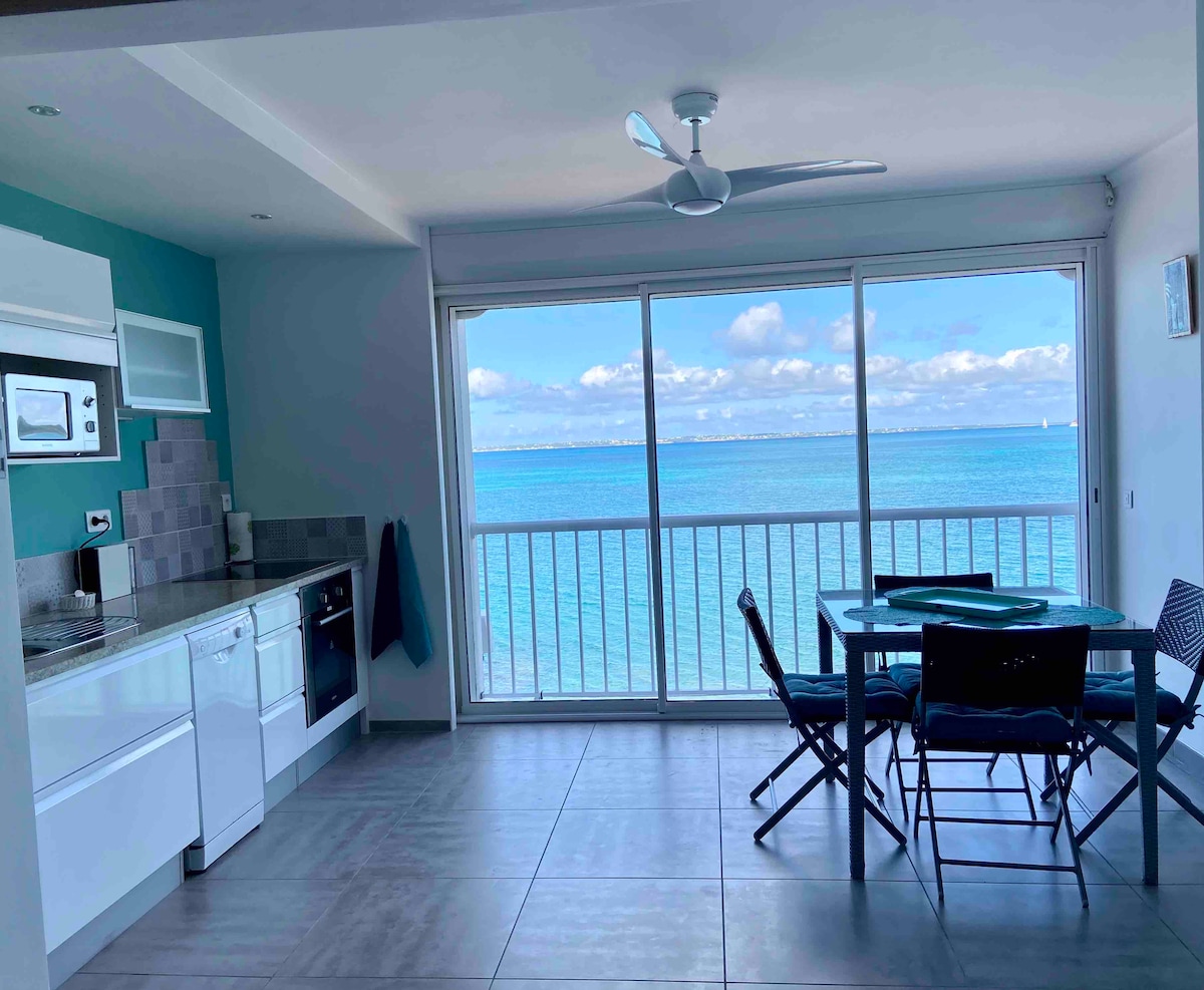 Este nuevo apartamento lleno de encanto ubicado en la playa, en el corazón de Grand-case, tiene su propio jardín de arena, tumbonas y acceso directo a la playa. Disfruta de una impresionante vista completa de la roca criolla y Anguila. Es un lugar privilegiado en la ciudad e incluso en la isla. Vistas al mar desde tu cama, desde el salón/zona de cocina, amplia terraza cubierta con sofá, cubierta de madera roja y cenador cubierto con hojas de palma trenzadas auténticas. ¡Verdadero estilo caribeño! * Único * * Ubicación inmejorable * * Wifi de alta velocidad * * Aparcamiento *