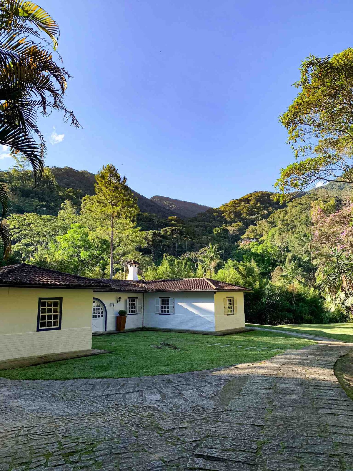 Ampla e aconchegante casa em meio a mata Atlântica, com riacho, vista para as montanhas e super silenciosa. Perfeita para momentos em família e de reconexão. À 10 minutos do centro de Itaipava e fácil acesso. O espaço A casa possui lareira interna e externa, a suíte conta com cama queen, tv 50 polegadas, ar quente e frio. As redes, pergolado, churrasqueira e a ducha, deixam o espaço de lazer super agradável.