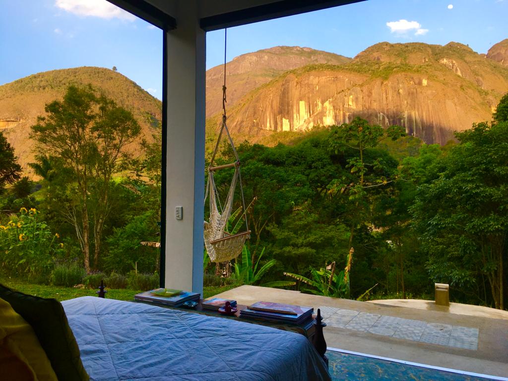 Estamos ubicados en el Parque Nacional Serra dos Orgãos, con rutas de senderismo junto a la naturaleza, cascadas y una exuberante vista de las montañas más bellas de Río, donde tenemos restaurantes cercanos y sitios vecinos con una experiencia rural, ya que es una región rural con plantaciones de vegetales, no estás aislado. Chalet con dormitorio doble, cocina americana, nevera, fogones, mesa, utensilios domésticos y ducha exterior.