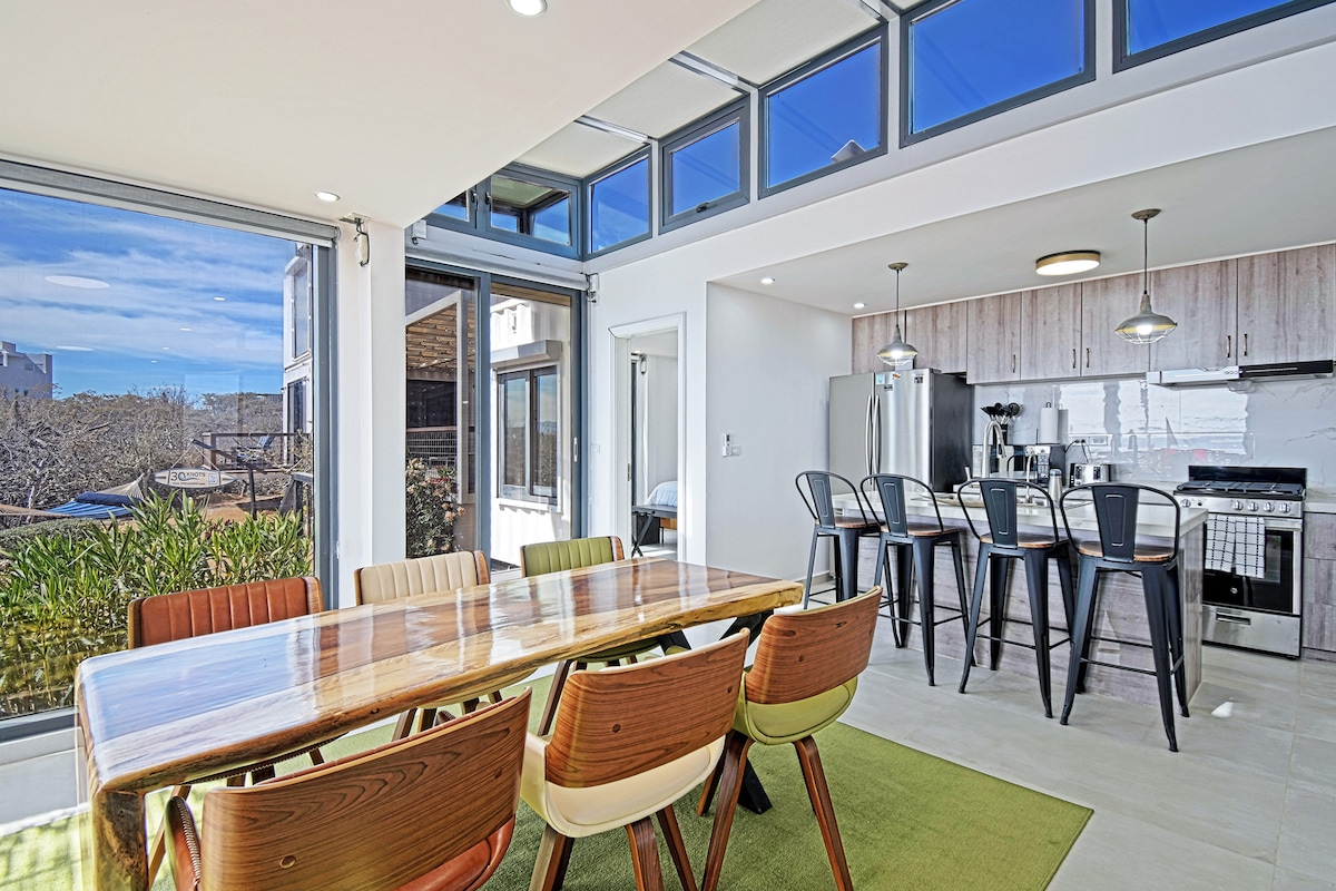 This custom container home is anything but ordinary... Direct ocean and sunset views, overlooking the iconic Cerritos Hacienda! Located within the Cerritos Surf Point Village, this rental is a 2 minute walk access to the main area of Cerritos beach and its world famous surf break. You are steps away from several restaurants, bars, beach, surf and the best that Cerritos has to offer. At 640sqft - this rental has everything you need, and nothing you don't!