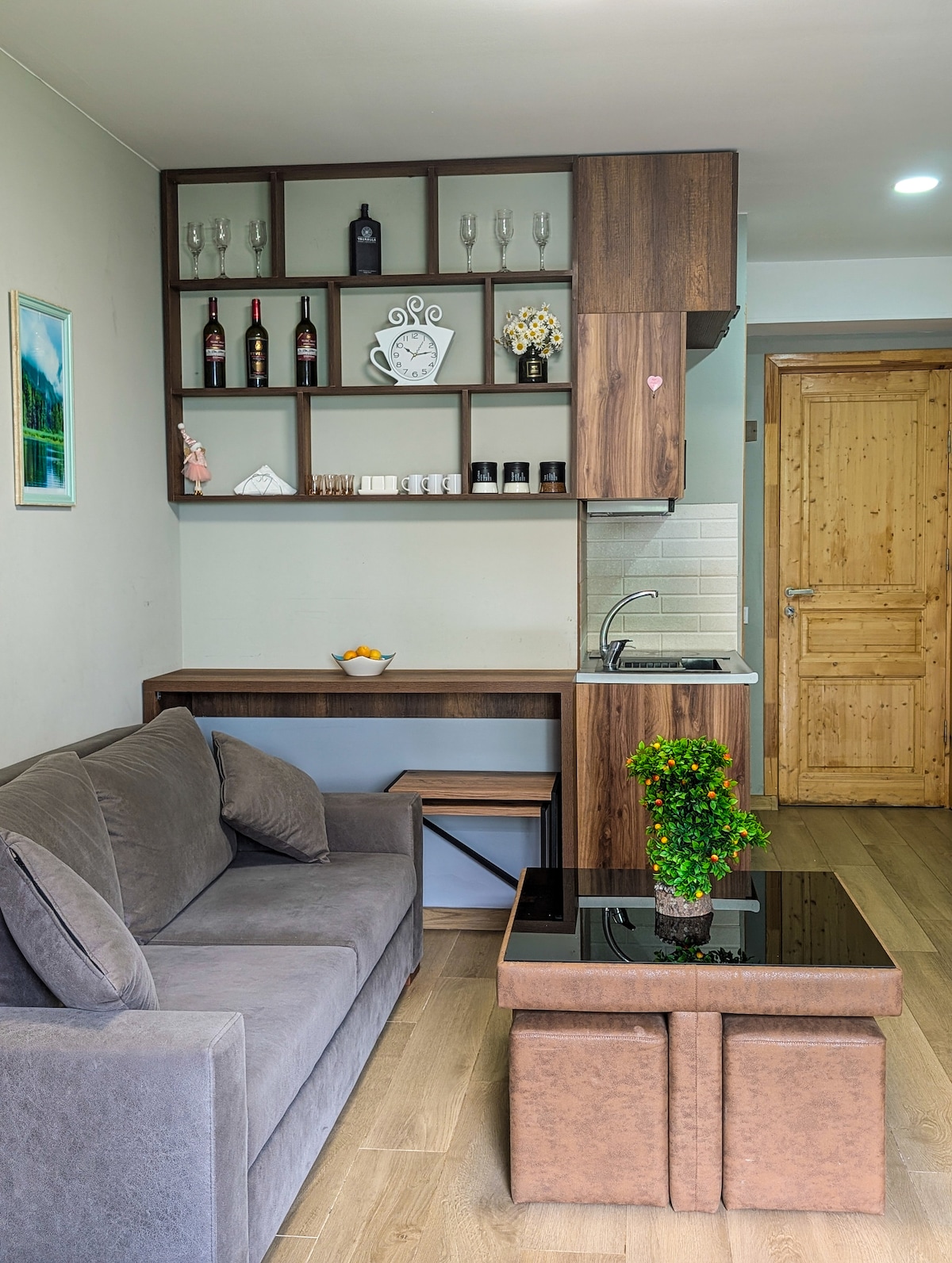 Estudio del complejo● Park Residence de 35 metros cuadrados. Nuestros apartamentos triples de estudio ofrecen camas con un cómodo sofá Queen+1. ●El apartamento triple estudio también ofrece un baño privado con ducha e inodoro. Las cocinas● totalmente equipadas hacen que el comedor sea fácil con instalaciones completas para hacer té y café, nevera y congelador, microondas y lavadora. Todos los utensilios de cocina y cubiertos se suministran. ●Cerca de los apartamentos hay supermercados, farmacias. ●El mejor apartamento de vacaciones en el centro de Bakuriani.