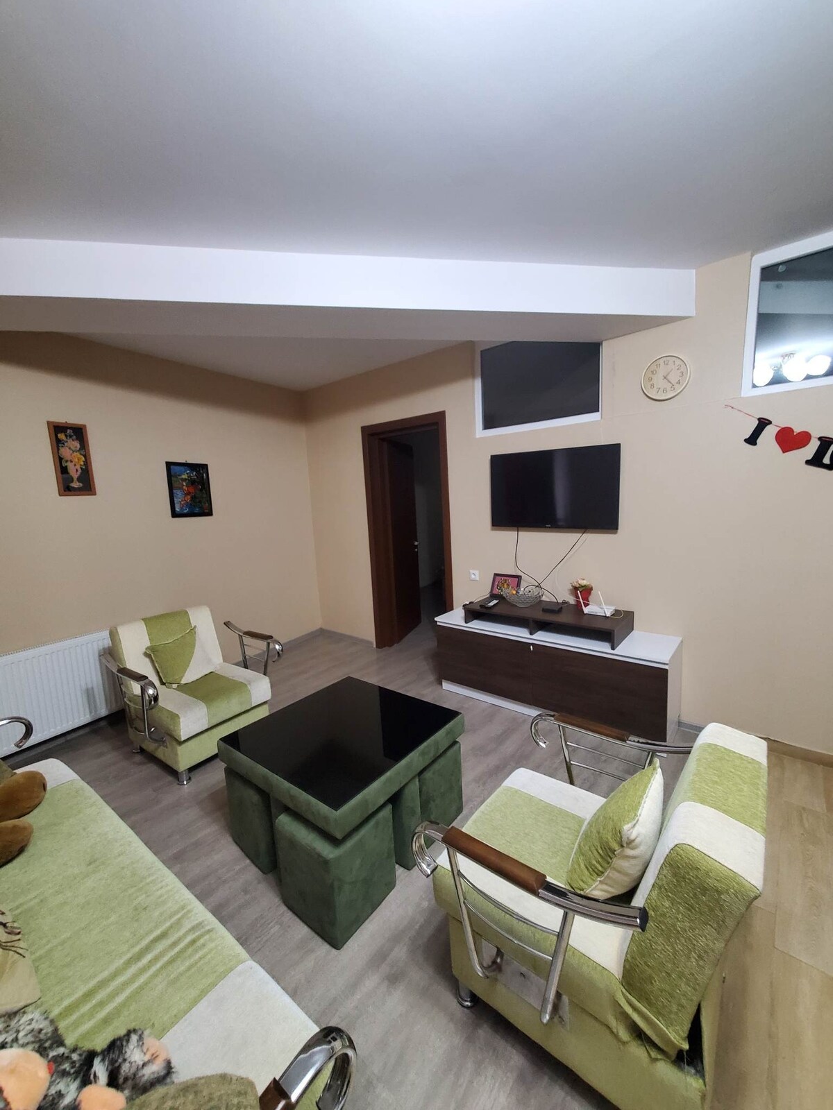 ¡Apartamento pequeño y acogedor con vistas a la montaña! No es demasiado elegante o moderno, ¡simplemente un poco encantador! ¡El edificio de apartamentos tiene un gran parque infantil y está muy cerca del bosque! Nuestro espacio es adecuado para 5 personas, con 1 litera y un sofá cama grande. ¡También tenemos una cama plegable adicional! Podemos organizar todo lo que necesitan los huéspedes, nuestra principal prioridad es una hospitalidad inolvidable, ¡creando las mejores condiciones! TAMBIÉN ¡El mejor oxígeno en Bakuriani!