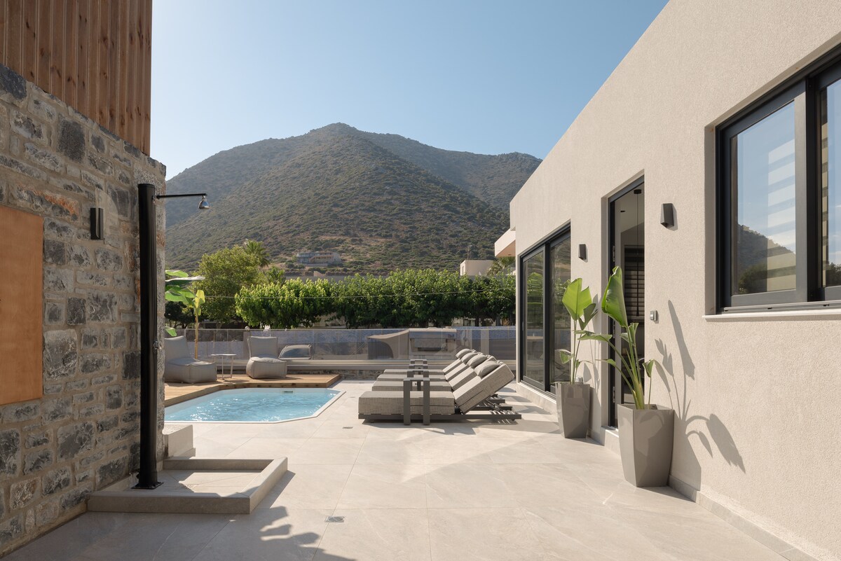 Esta suite de lujo, de 60 metros cuadrados, es ideal para una estancia inolvidable. Cuenta con dos amplias terrazas con impresionantes vistas al mar. A 150 metros, encontrarás una hermosa bahía con arena dorada y aguas tranquilas y azules, ideal para relajarse y nadar. La suite combina el lujo con la belleza natural, proporcionando todas las comodidades necesarias para una estancia cómoda e inolvidable, mientras que el acceso se realiza a través de una elegante escalera.