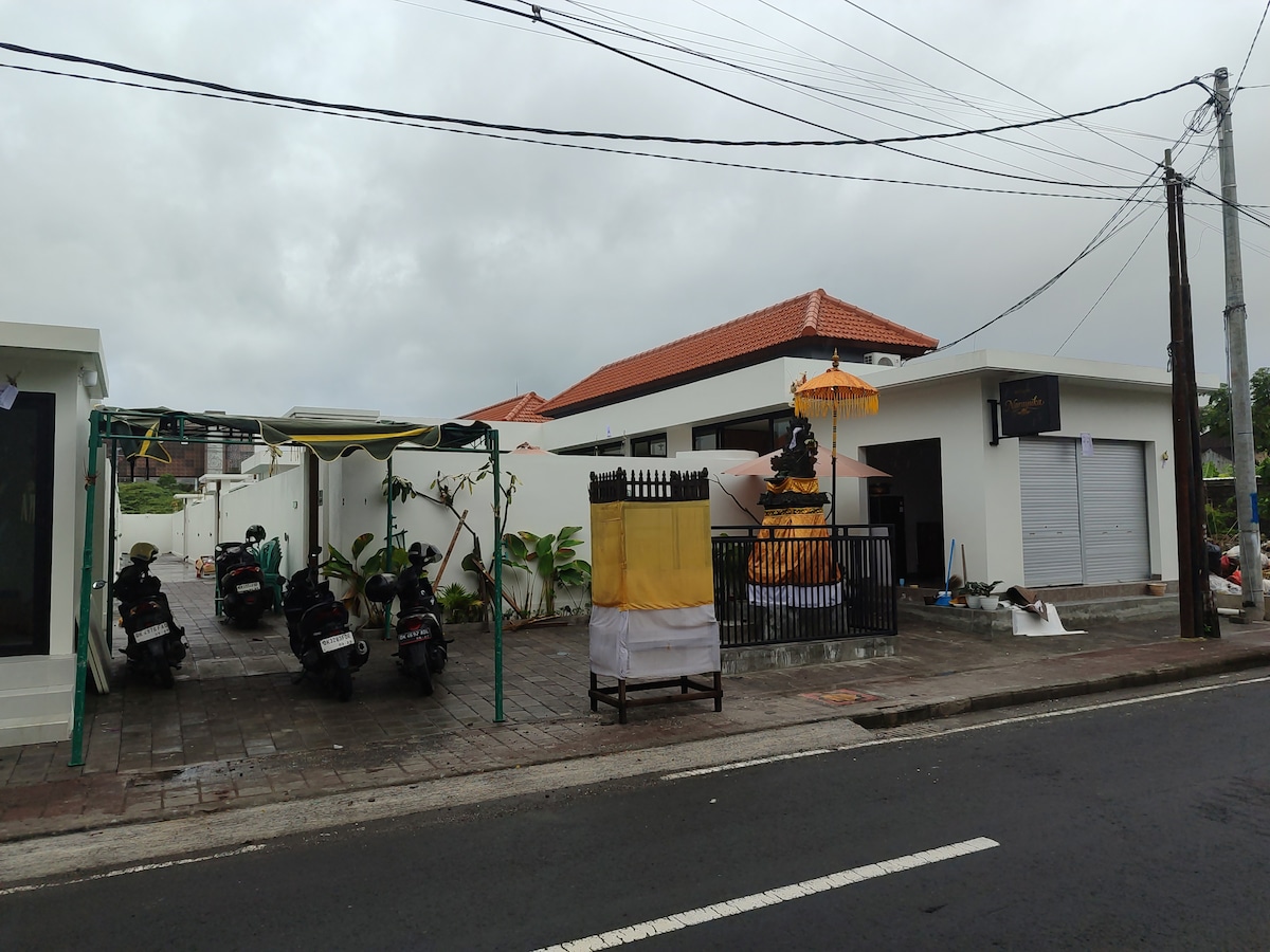 Tempat menginap bergaya ini cocok untuk perjalanan grup.kompleks vila yang terletak strategis di kawasan Umalas/Canggu, menawarkan akomodasi pribadi dengan fasilitas dapur lengkap, taman, dan kolam renang outdoor. Vila ini cocok untuk keluarga atau kelompok, menyediakan kenyamanan seperti Wi-Fi gratis, AC, dan layanan seperti antar-jemput bandara dan laundry, dekat dengan Pantai Berawa dan Seminyak.