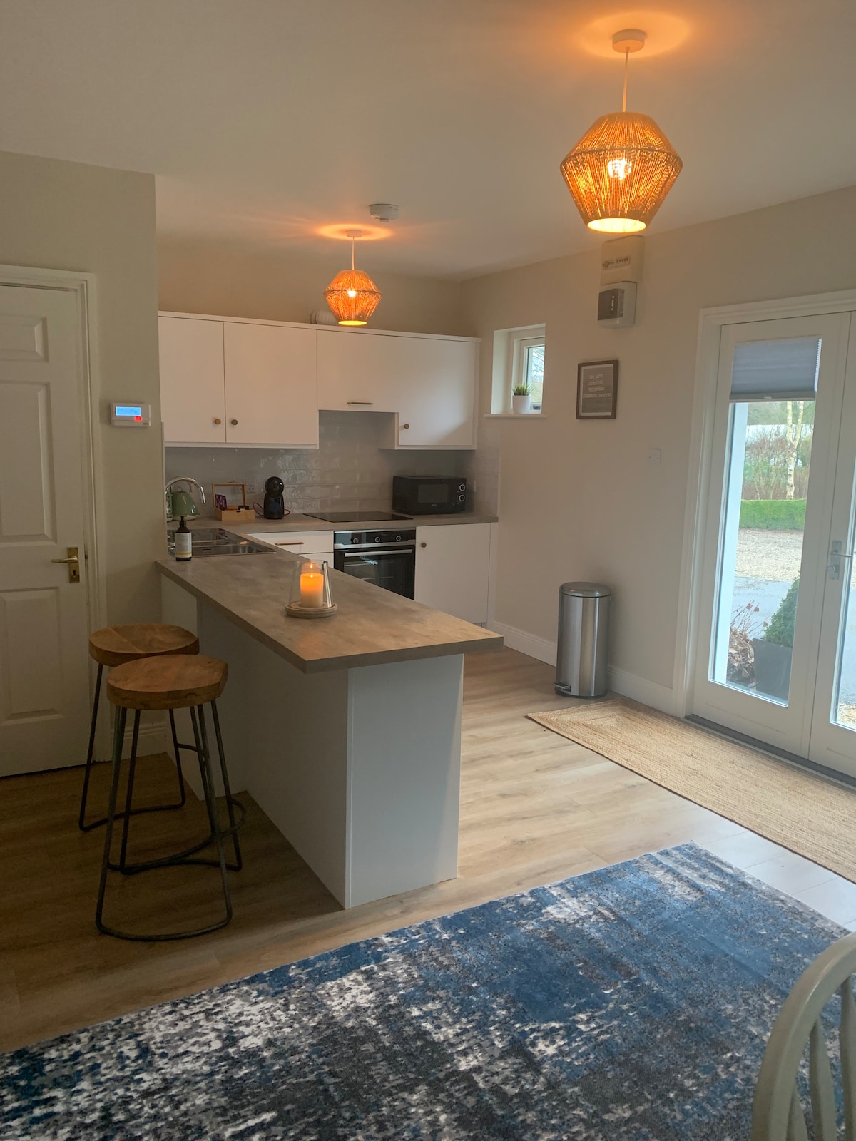 Moderno, espacioso y totalmente equipado apartamento de dos dormitorios y dos baños con todas las comodidades del hogar. Despiértate con el canto de los pájaros y el balido de las ovejas en esta tranquila ubicación rural. Compra hasta caer en el mundialmente famoso Kildare Village, vístete para impresionar en el hipódromo de Curragh o maravíllate con los Jardines Japoneses, al lado del Irish National Stud, todo a 10 minutos en coche. Las ciudades cercanas incluyen Newbridge, Kilcullen y Kildare Town. A seis minutos de la M7, a 1 hora de Dublín, a 2 horas de Cork.