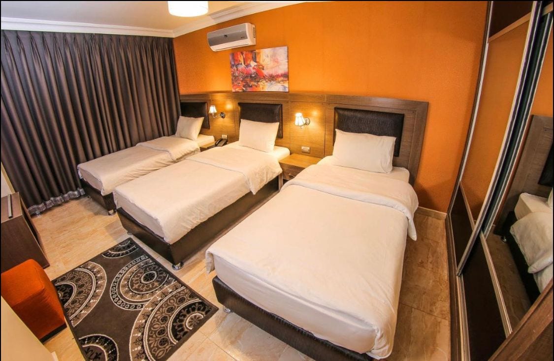 Alójate en uno de los hoteles mejor valorados del centro de Amán. Excelente ubicación a poca distancia a pie de todos los sitios y restaurantes locales. Esta habitación cuenta con una cama tamaño «king» o dos camas individuales, según se solicite.