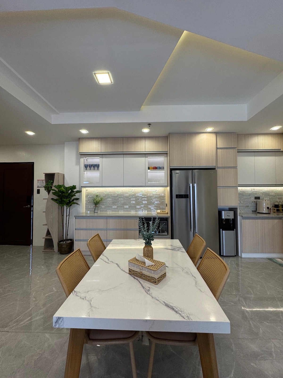 ✅ Luxurious Master Bedroom ✅ Fully Air-conditioned Rooms ✅ 65inch Premium QD MiniLED TV ✅ Youtube & Netflix Premium 4K+HDR ✅ Up to 600Mbps FiberX Internet ✅ Complete Kitchen ✅ Complete Dining Set ✅ Towels and Toiletries ✅ Cabinets with Hangers ✅ Shower Heater ✅ Automatic Washer ✅ Ground Floor (No Stairs) ✅ Garage Parking & Street Parking ✅ Free Drinking Water SNOW Transient House is in a Prime Location near popular destinations! A home with a "Modern Rustic" Design.