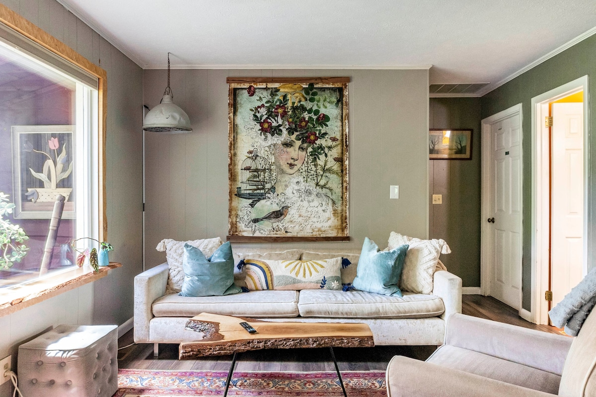 Taller de carpintería reconvertido, pasó un tiempo como ebanistería, tienda de marcos de fotos y, más recientemente, loft de artista. ¡Piensa en un loft neoyorquino que se encuentra con una cabaña de montaña, con estufa de leña con puerta de cristal! Ahora, es un espacio único. Entra por el amplio garaje para 2 coches hasta la tienda original, diseño actualizado para una escapada única al LOFT de montaña. Piensa... ¡rústico, crudo, real, de vuelta a lo básico, con un toque moderno! ¡Calefacción/aire acondicionado mini-split de 2 zonas! Calienta bien hasta alrededor de 30 grados, calentador de pared en el baño/calentador de gas en la sala de estar.
