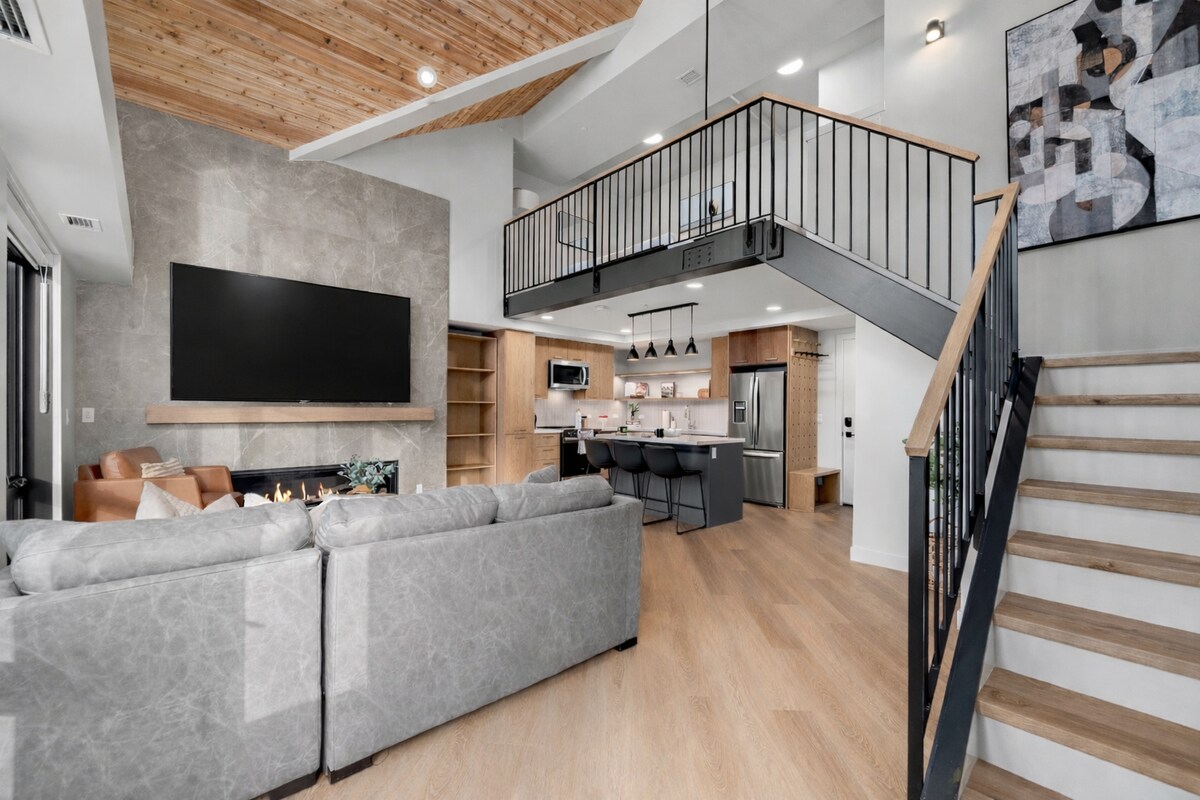 ¡Te damos la bienvenida a la escapada de lujo en el corazón de Canmore! ¡Lujoso ático con impresionantes vistas a la montaña! - Este lujoso y actualizado ático de varios niveles es una unidad en esquina orientada al sur con vistas espectaculares a la naturaleza. Los muebles de alta gama y estilo tronco crearon la moderna casa de vacaciones que has estado buscando. El gimnasio y la romántica bañera de hidromasaje al aire libre en la azotea con vistas de 360 grados Bow Valley están convenientemente ubicados a pocos pasos.