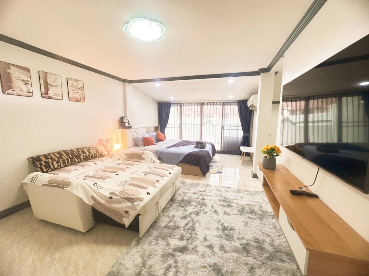 Centro Bangna es una moderna villa residencial independiente de 2 plantas ubicada en la zona de BangNa Villa, un sistema de alarma de seguridad para toda la casa y seguridad las 24 horas.El centro comercial más grande de Bangkok "IKEA" y el supermercado Big C están a 1,5 km, y la calle de aperitivos está a 1 km.Está a 20 minutos en coche del mercado nocturno de trenes de los lugareños tailandeses y del parque Nine Emperor.A media hora desde el aeropuerto de Suvarnabhumi.Recogida y traslado gratuitas para estadías de más de 3 días, y recogida y entrega gratuitas durante más de 7 días.
