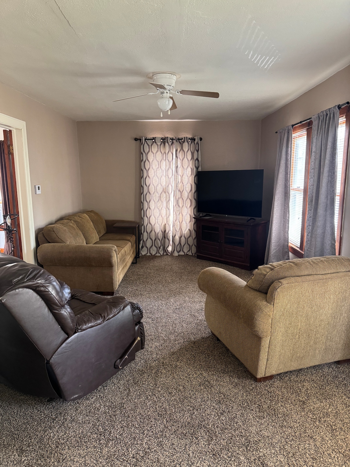 *Casa recién remodelada de 3 dormitorios con un baño. El dormitorio principal tiene una cama tamaño king, armario y TV. El segundo dormitorio tiene una cama tamaño queen con armario. El tercer dormitorio tiene una cama de matrimonio y una cama individual con armario. Esta casa tiene lavadora y secadora en las instalaciones. Lleva a toda la familia a este fantástico alojamiento que tiene un montón de espacio para divertirse. Nos especializamos en alquilar a cazadores durante las temporadas de caza.