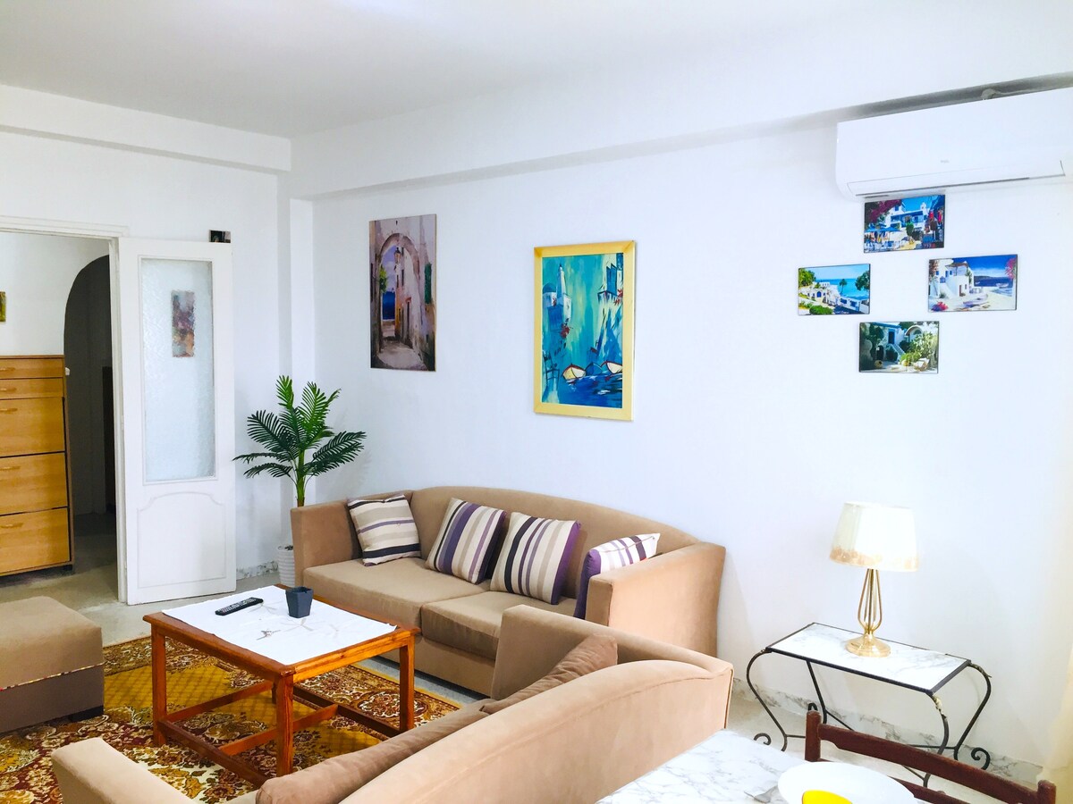 Cet appartement confortable et spacieux, situé en plein cœur du Bardo, est idéal pour les familles et les touristes étrangers. Il bénéficie d'un emplacement sûr et calme, à proximité du centre-ville, de l'aéroport et du musée, avec parking gratuit et entrée autonome. ✔️ Parking gratuit ✔️ Arrivée autonome ✔️ Wi-Fi haut débit ✔️ Idéal pour les familles ✔️ Cuisine équipée ✔️ Climatisation ✔️ Un endroit calme ✔️ Convient aux longs séjours ✔️ À proximité du métro et du train ✔️ Clinique de Bardo