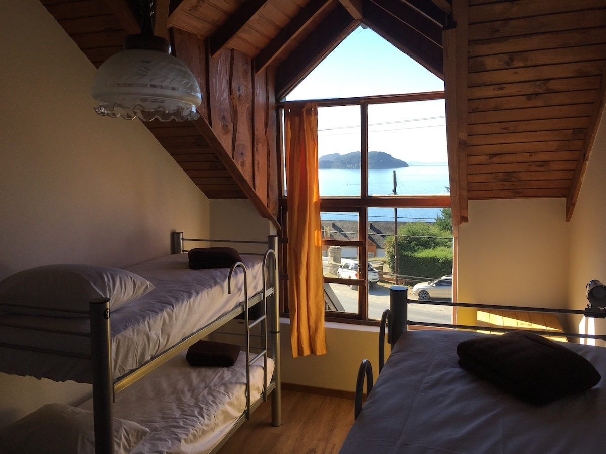 Habitación privada con baño compartido. El Hostel esta localizado en una ubicación privilegiada, en el centro de la ciudad de San Carlos de Bariloche, mirando al lago y a pasos de las mejores cervecerías artesanales de la zona. Living y comedor muy amplio y confortable, con múltiples sillones para relajarte, libros para leer e intercambiar. Sala con computadoras para que las uses cuando necesites sin costo extra. Todas las mañana servimos un desayuno completo, gratis para los huéspedes.