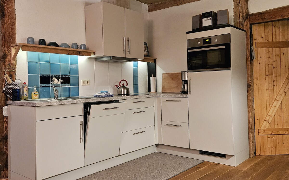 Aquí encontrarás pura relajación: Tanto si vienes para un fin de semana largo como si te quedas más tiempo, en la casa de entramado de madera, renovada de forma biológica y sostenible, te sentirás al menos tan cómodo como en casa. El uso de materiales de construcción naturales tradicionales, principalmente madera y arcilla, crea un clima interior único. El mobiliario combina un confort de vida muy contemporáneo con muebles restaurados con cariño. Una instalación de almacenamiento de bicicletas con cerradura está disponible.