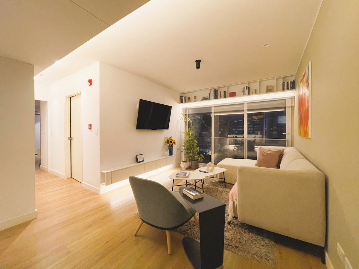 Departamento amplio y elegante en el corazón de Barranco. Ubicación privilegiada: A pasos de los principales puntos turísticos de Barranco y Miraflores, de los mejores restaurantes, bares y galerías de arte. Dormitorio principal: Cama king-size y gran walking closet. Espacio abierto y luminoso: Sala de estar y kitchenette con luz natural. Cochera privada: sujeta a disponibilidad Áreas comunes: Gimnasio, ambiente para reuniones y area de juego para niños. Estilo minimalista.