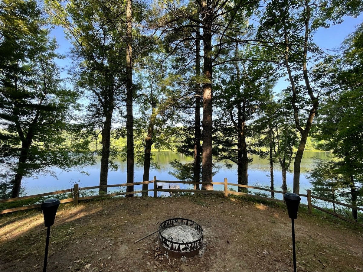 Enjoy mornings in a charming lakeside cabin, where breathtaking views greet you from the wrap-around deck just steps from the water. Swim in the clear, sandy-bottom lake, fish from your private dock, or play yard games with family and friends. Relax on the deck, soak in the peaceful surroundings, and as the sun sets, gather around the cozy campfire. With endless opportunities for fun, adventure, and relaxation, this cabin is the perfect setting for creating cherished family memories.