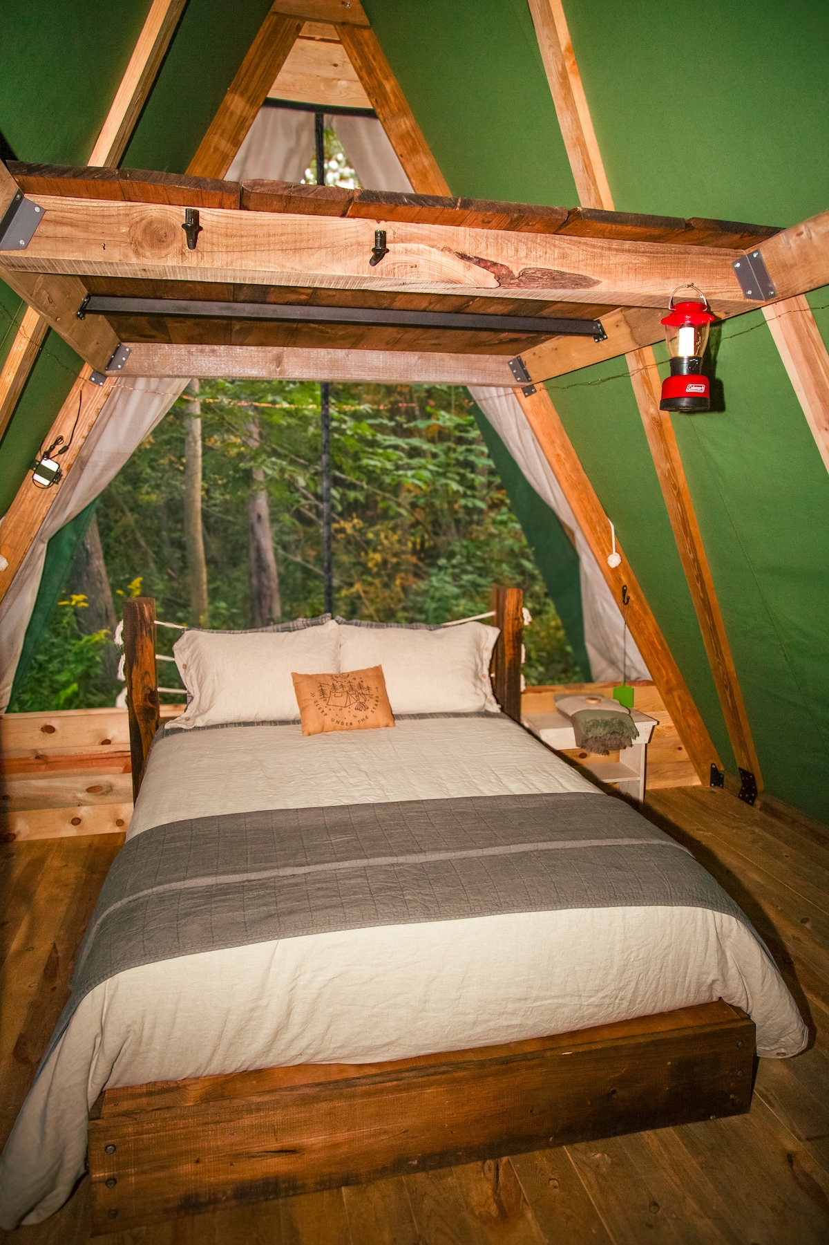 Una acogedora cabaña con estructura de A escondida en el bosque en 13 acres privados a lo largo del río Hay. Retiro profundamente aislado diseñado para reducir la velocidad, reconectar y encontrar inspiración, a 90 minutos en auto de las ciudades gemelas. El entorno ofrece una privacidad excepcional y una sensación de calma difícil de encontrar. Pasa los días remando bajo formaciones rocosas, calentándote en la sauna de leña, relajándote con un libro junto al fuego, viendo pasar la vida silvestre y experimentando una escapada tranquila y reparadora en cada estación.