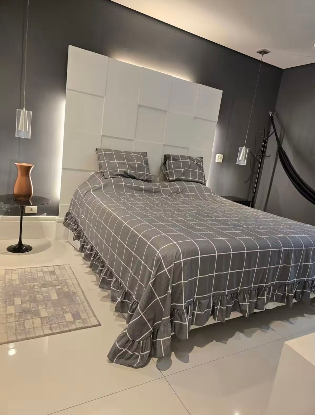 Apartamento cómodo y moderno, bien situado en el centro de Alphaville, en Al. Grajaú n.º 321, (a menos de 100 metros de La Ville y Al. Río Negro, la avenida principal de Alphaville), perfecto para tu estancia, con 2 televisores inteligentes y 2 aires acondicionados (en el salón y el dormitorio), una cocina bien equipada, una cama tamaño king y dos hamacas (en el salón y el dormitorio), limpieza y servicio de limpieza de lunes a sábado ya incluidos en la tarifa diaria y aparcamiento gratuito cubierto y descubierto en el propio edificio.