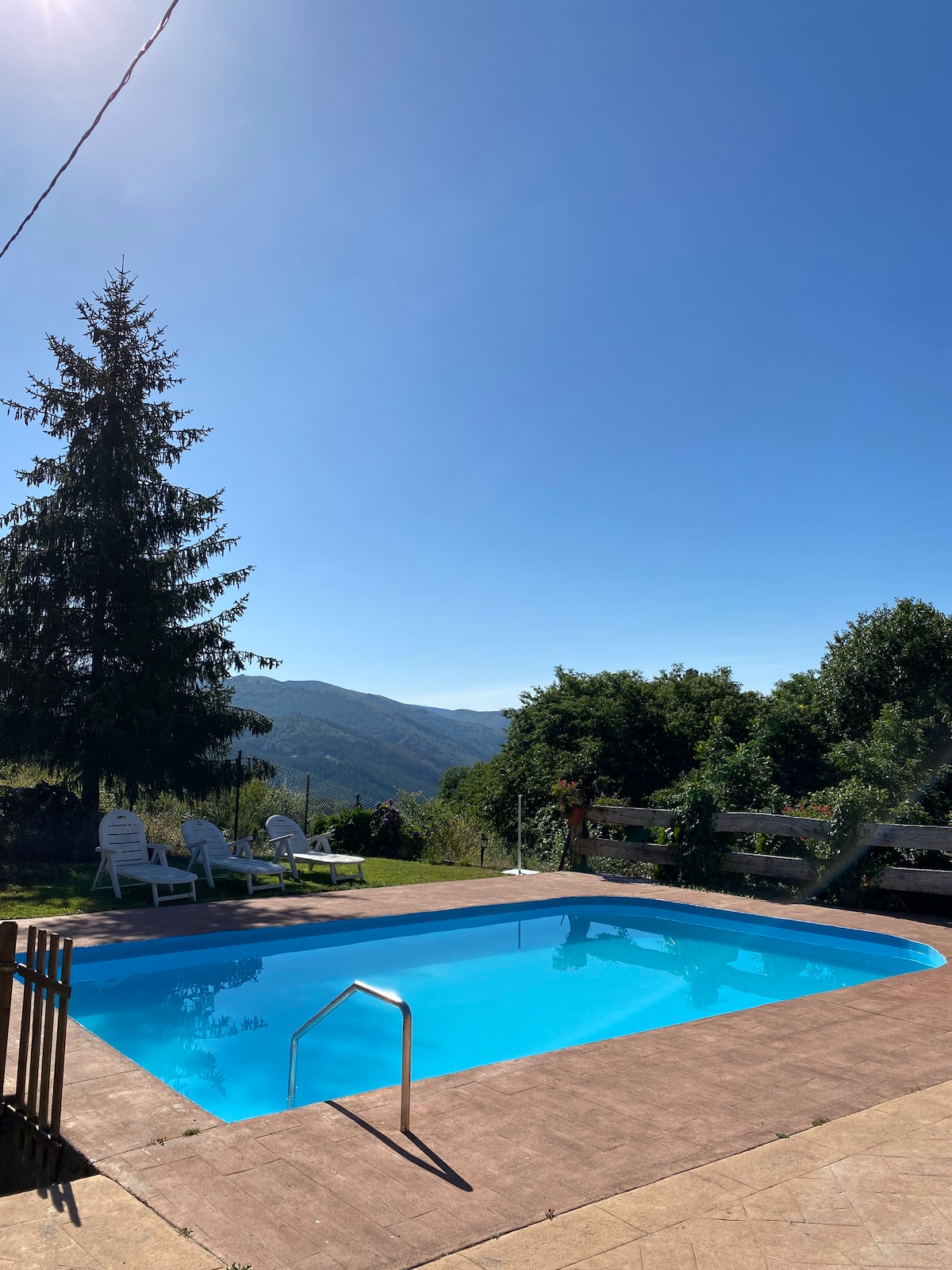 Ideal tanto para parejas como familias , construida en piedra y tejado de lastra original, inigualable localización y vistas, Bosque Privativo de Robles y Castaños con mesa de picnic propia, extensa finca para pasear en un entorno espectacular,2 plantas,3 habitaciones una de ellas con sofá y tv, Barbacoa - Chimenea exterior , Pozo de agua , Porche cubierto , Balconada, Mirador - terraza colgado en la ladera con increíbles vistas al valle y las montañas,igual que toda la casa,un lujo de postal !