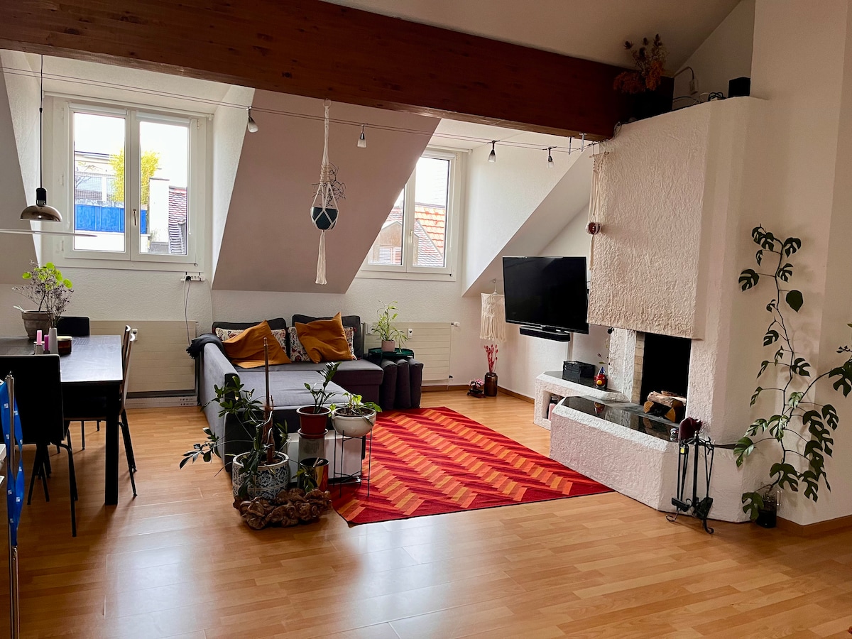 Experimenta el lujo en mi céntrico ático, a solo dos minutos a pie de Basel Messe, perfectamente ubicado para los visitantes de todos los lugares de arte de la ciudad. Disfruta de la luminosa y abierta sala de estar con techos altos con una acogedora chimenea y un gran comedor, una cocina moderna totalmente equipada, un dormitorio sereno y una terraza privada. Es un espacio habitable personal con todos los servicios. No dudes en ponerte en contacto conmigo si tienes alguna pregunta o solicitud de reservación.