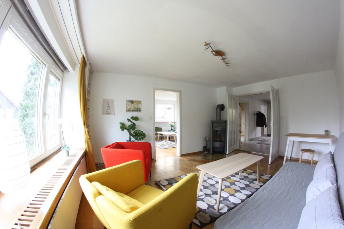 Moderno y acogedor loft espacioso en uno de los mejores barrios de Basilea en una zona verde residencial perfecta para relajarse y a solo 15 minutos en tranvía del centro de la ciudad. Parada de tranvía a solo 3 minutos a pie, panadería/cafetería y poste cercano. Lo más destacado del apartamento es una gran terraza con maravillosas vistas que puedes disfrutar en primavera y verano y una chimenea que puedes disfrutar en otoño e invierno.