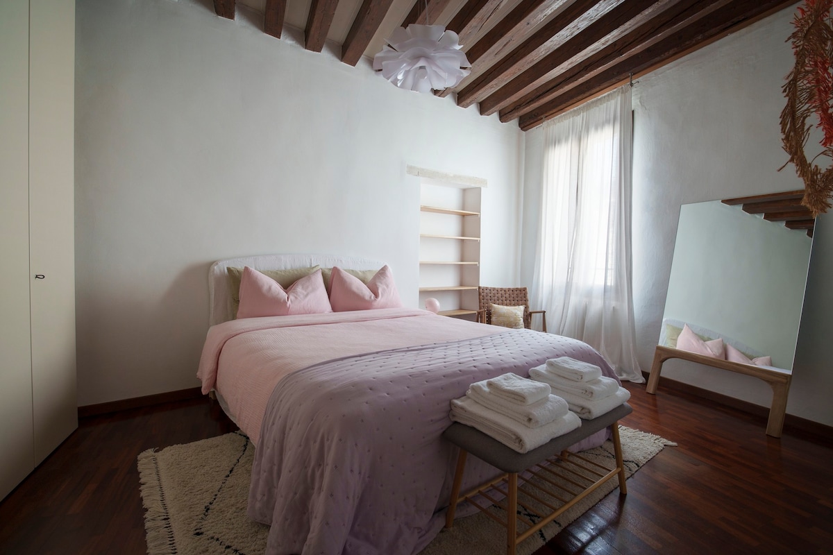 Acurrúcate con un libro, desayuna y cena mientras admiras la increíble vista de los campanarios y canales de Venecia, vive como un verdadero veneciano en el barrio más típico de Venecia a pocos pasos del puente de Rialto, Ca' D'oro y San Marco en un apartamento acabado con muebles y adornos hechos por artesanos venecianos y de Murano. Te sentirás como si estuvieras experimentando el fantástico ambiente de los años 1800, pero con todas las comodidades de un apartamento moderno. No te pierdas esta increíble experiencia.