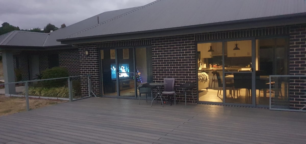 Esta es una generosa casa de 6 dormitorios con dos áreas de estar y tres baños. Hay mucho espacio por dentro y por fuera, ubicado en 25 acres. Podemos dormir hasta 22 personas bajo petición. Hay una piscina climatizada y cancha de tenis, mesa de billar, mesa de ping pong (en el garaje), juguetes para los niños. Tenemos TV, una chimenea en el interior y una fogata en el exterior y una gran barbacoa. Hay calefacción y refrigeración por conductos todo el año. Tenemos pollos que se pueden alimentar y los canguros, ovejas y vacas nunca están lejos.