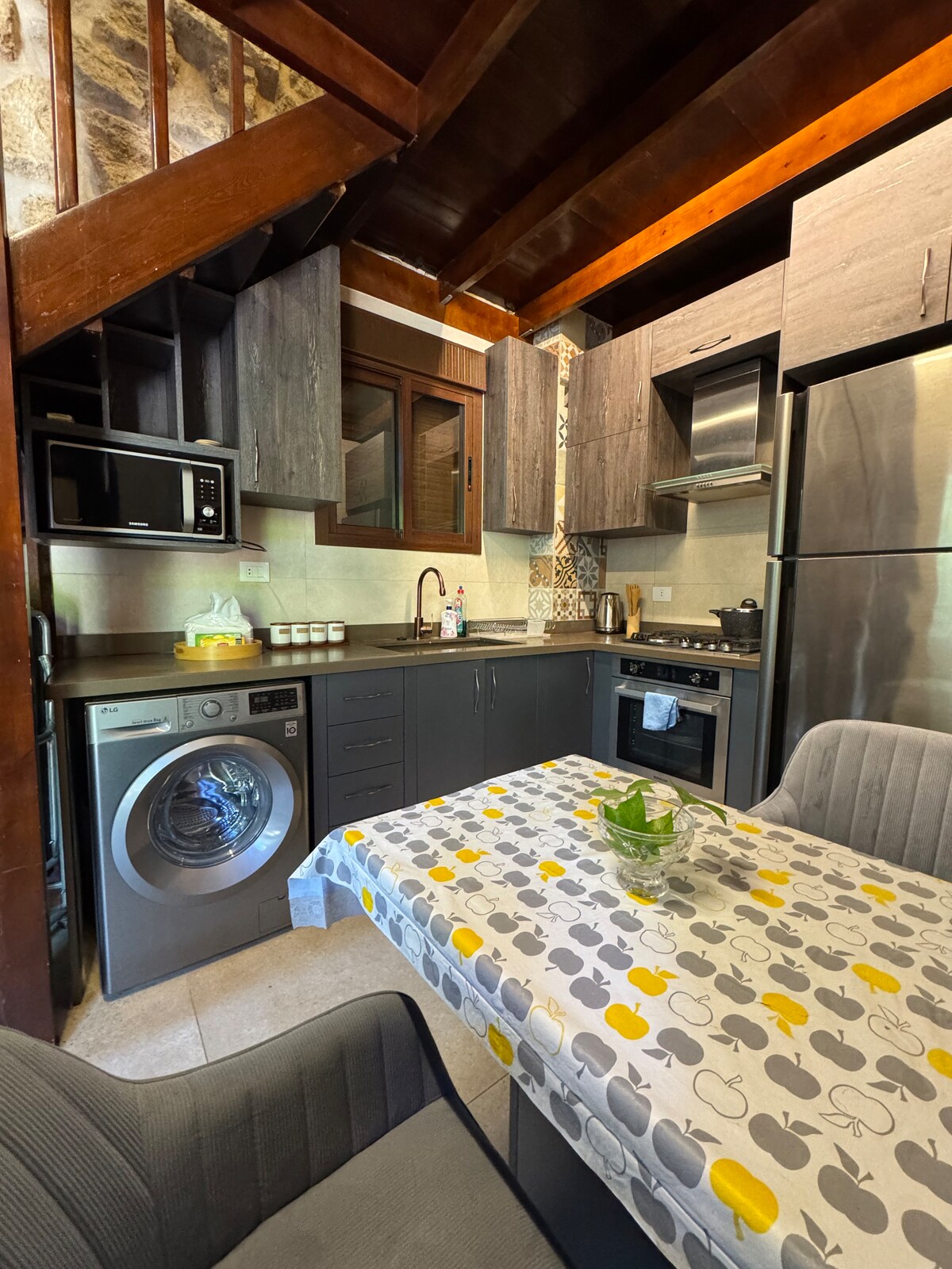 Ubicada en el corazón de los zocos de Batroun, Bel Souk Guest House ofrece una estancia auténtica y acogedora donde subes las escaleras y te encuentras a pasos de vibrantes bares, callejones históricos y encantadoras boutiques. A solo 5 minutos a pie de la muralla fenicia, el puerto pesquero y la playa de Bahsa. Totalmente equipado para alojar cómodamente hasta 5 personas con 2 dormitorios y un sofá cama. Tanto si estás aquí para explorar como para relajarte, esta joya escondida rodeada de árboles es tu base perfecta en el centro de la ciudad.