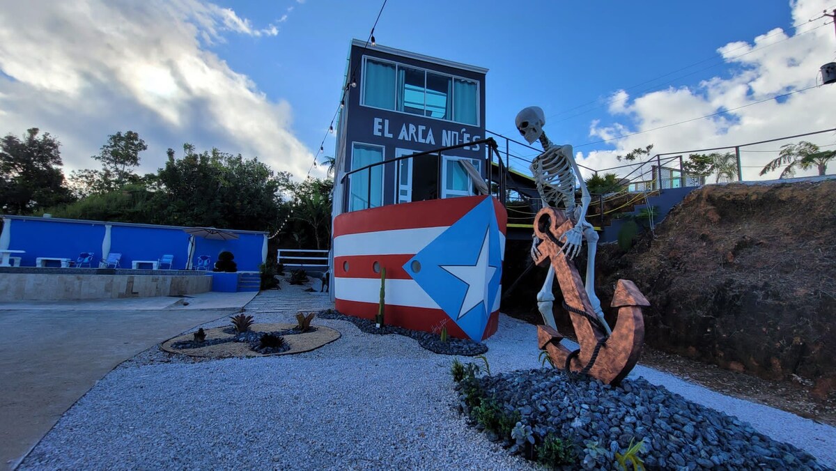 ¡Lo que buscas lo tenemos! Un espacio único creado en forma de barco con una vista espectacular y una piscina climatizada increíble (la piscina es compartida). La habitación tiene un techo de cristal nunca antes visto. El pueblo de Orocovis es encantador y la frescura de sus montañas te llamará de regreso. Ideal para desconectar de tus preocupaciones y conectar con la naturaleza.