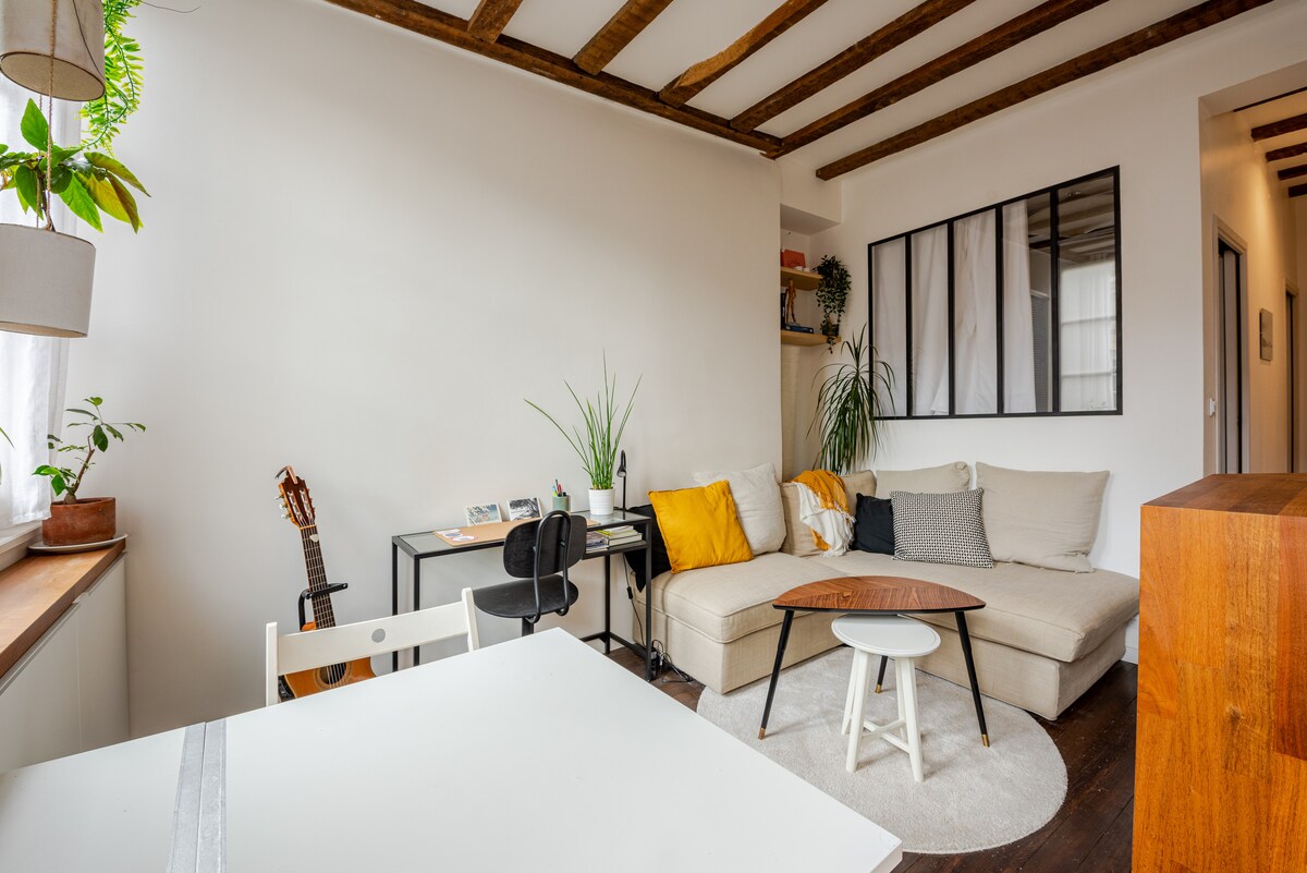 Gran T2 luminoso renovado con cuidado en el corazón de Bayona. Ubicación de ensueño: todo se hace a pie, desde Les Halles hasta las bonitas y animadas callejuelas. Habitación tamaño queen, ducha grande a ras de suelo, cocina equipada y escritorio espacioso. Tranquilidad, encanto y luz para un verdadero refugio en pleno centro. Escalera antigua, sin ascensor en el 4º piso. Gestionado por mi conserjería local con una bienvenida atenta y consejos personalizados. ✨