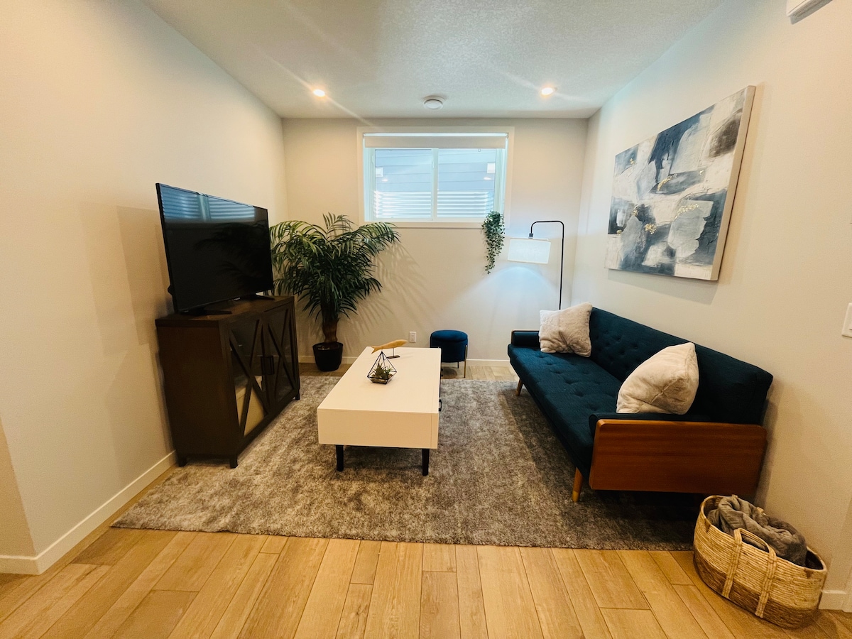 Updated Lower-Level Private Suite with Private Entrance Welcome to your perfect getaway in NW Calgary! This fantastic, fully private suite offers all the comforts of home. With 9-foot ceilings and large windows, the space feels bright and inviting, offering a comfortable retreat. We’ve had the pleasure of hosting guests from around the globe, from short visits to extended stays. We’re excited to welcome you and make your time in Calgary unforgettable!