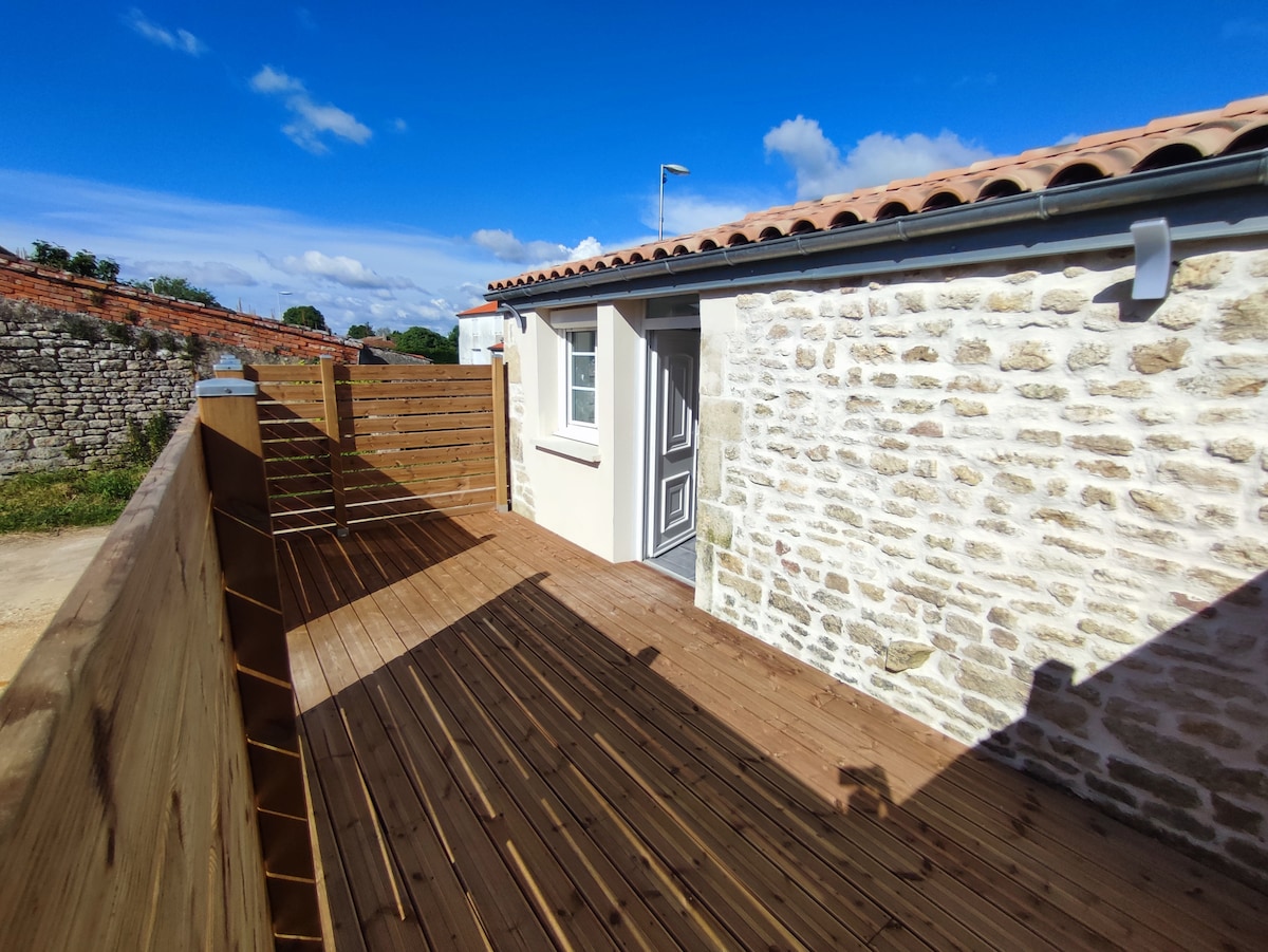CASA RURAL DE ALQUILER – T3 Tranquila, cerca de Rochefort (8 km), ideal para unas vacaciones o una etapa. En la planta baja: Sala de estar/Cocina (placa eléctrica, horno, microondas, nevera/congelador, lavadora, TV); cuarto de baño Arriba: 2 habitaciones ,con 1 cama de 140 cm, wc Terraza privada de 25 m², con muebles de jardín y barbacoa Ropa de cama y toallas incluidas Posibilidad de 1 cuna (sin cargo adicional) Comercios de St Agnant: panaderías, estanco, restaurante... Para 4 personas