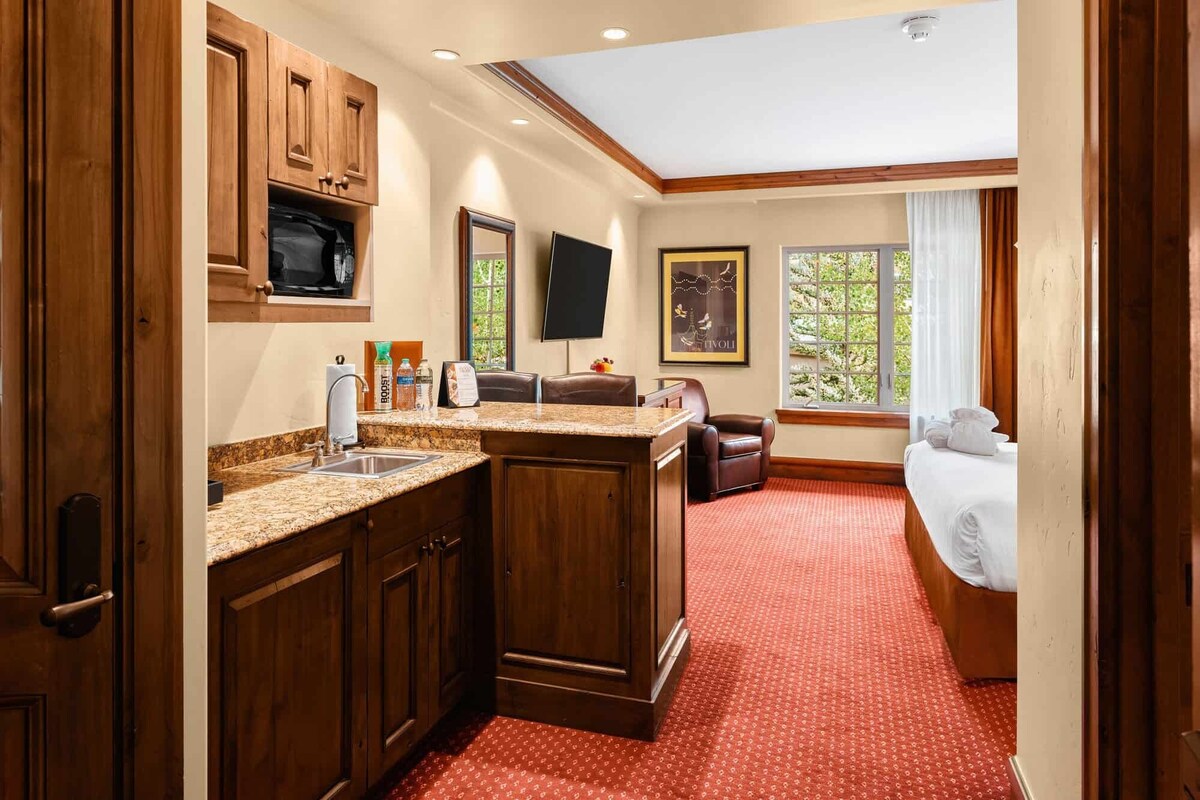 Welcome to your Alpine home away from home! Our cozy 525 square-foot condo is tucked inside Beaver Creek Lodge, a luxury Marriott property in the heart of the village featuring stunning creek and mountain views, top-tier amenities and the convenience of walkable access to all the shops, slopes and trails– without need for a car! Parking must be done with the hotel’s paid valet service, and Christy’s Sports, located inside the lodge, makes for easy rental and ski storage.
