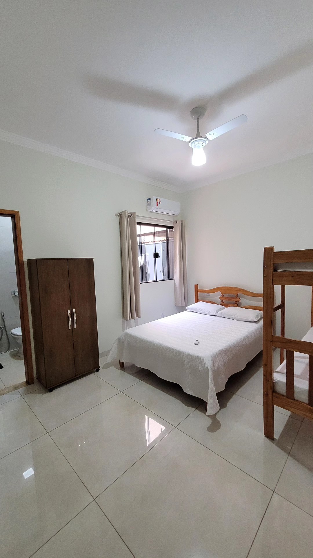 1 cuadra del hospital Santa Casa da Unimed, casa con 2 dormitorios, sala de estar, cocina y baño. Aire acondicionado en la sala y dormitorios. Espacio exterior con un hermoso jardín. En el primer dormitorio caben 2 personas en la cama doble; en el segundo dormitorio hasta 4 personas en 1 litera y 1 cama con cama auxiliar. Pequeña cocina para preparar comidas rápidas con cocina de 2 hornillas. Nevera y microondas disponibles en el lugar. Situado cerca de Barretos y Olimpia. **Cargo adicional por huésped**. No se permiten visitas.