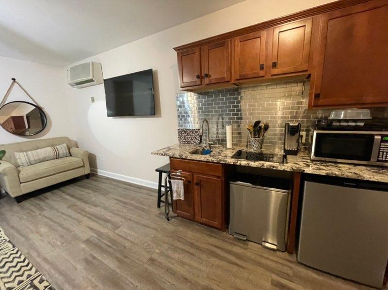 Una acogedora suite tipo estudio @Mariners Landing Resort by Smith Mountain Lake tiene una cama queen de espuma viscoelástica con cómodo cubrecolchón, un sofá cama, una cama enrollable; una cocina con nevera grande/lavavajillas/estufa/licuadora/cafetera ; wifi, TV por cable. Acceso gratuito a las piscinas de entrada y salida, jacuzzis, piscinas infantiles, playa, muelle de pesca, sala de juegos, senderos para bicicletas, gimnasio, baloncesto/tenis/pickleball/voleibol. Estacionamiento para remolques, verde de golf, alquiler de carritos de golf y atraque nocturno con cargo.